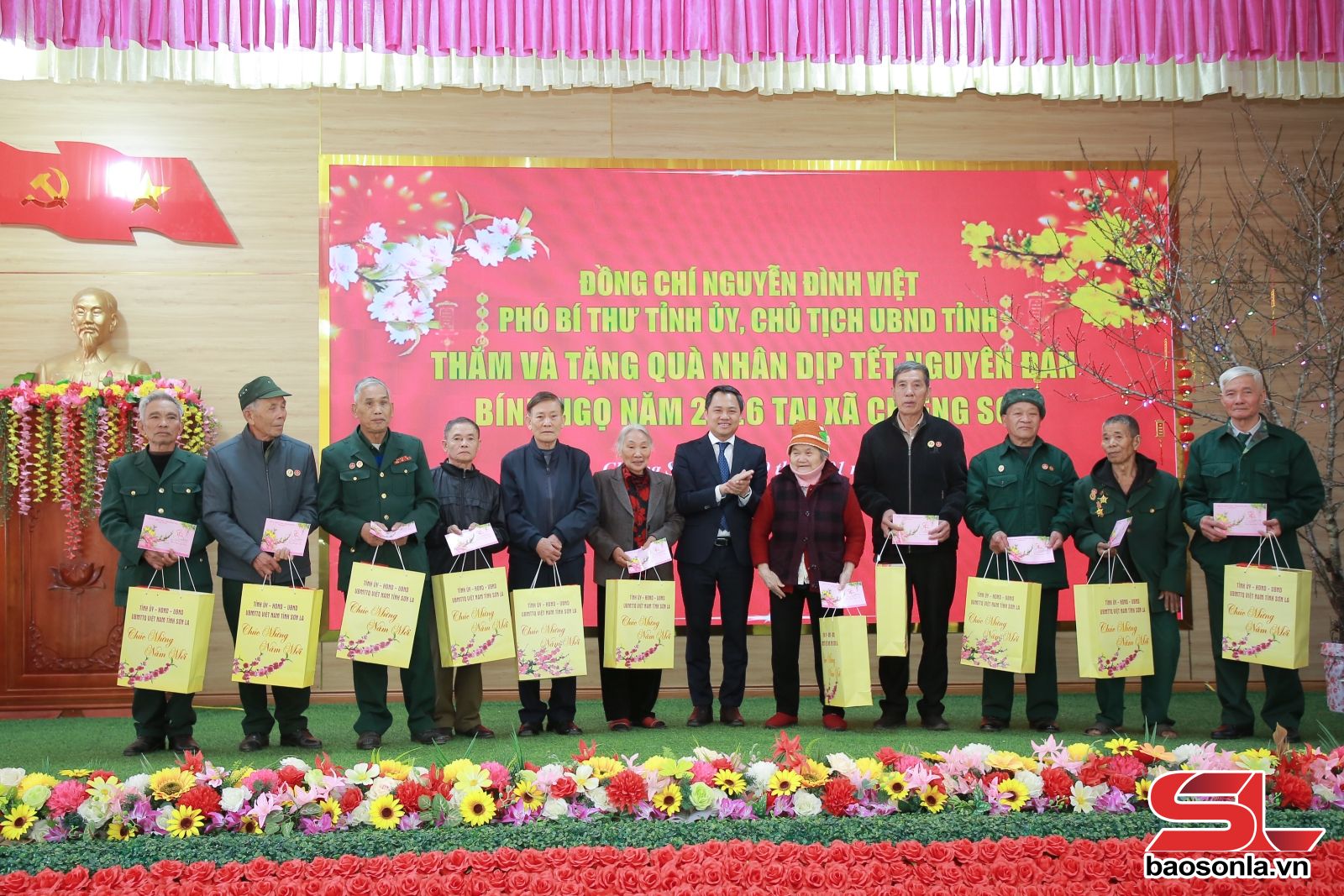 Nhân dịp này, đồng chí Chủ tịch UBND tỉnh thay mặt Tỉnh ủy, HĐND, UBND, Ủy ban MTTQ Việt Nam tỉnh đã tặng 80 suất quà cho các gia đình chính sách, hộ nghèo tại các xã, phường: Thảo Nguyên, Vân Sơn, Lóng Sập, Chiềng Sơn.