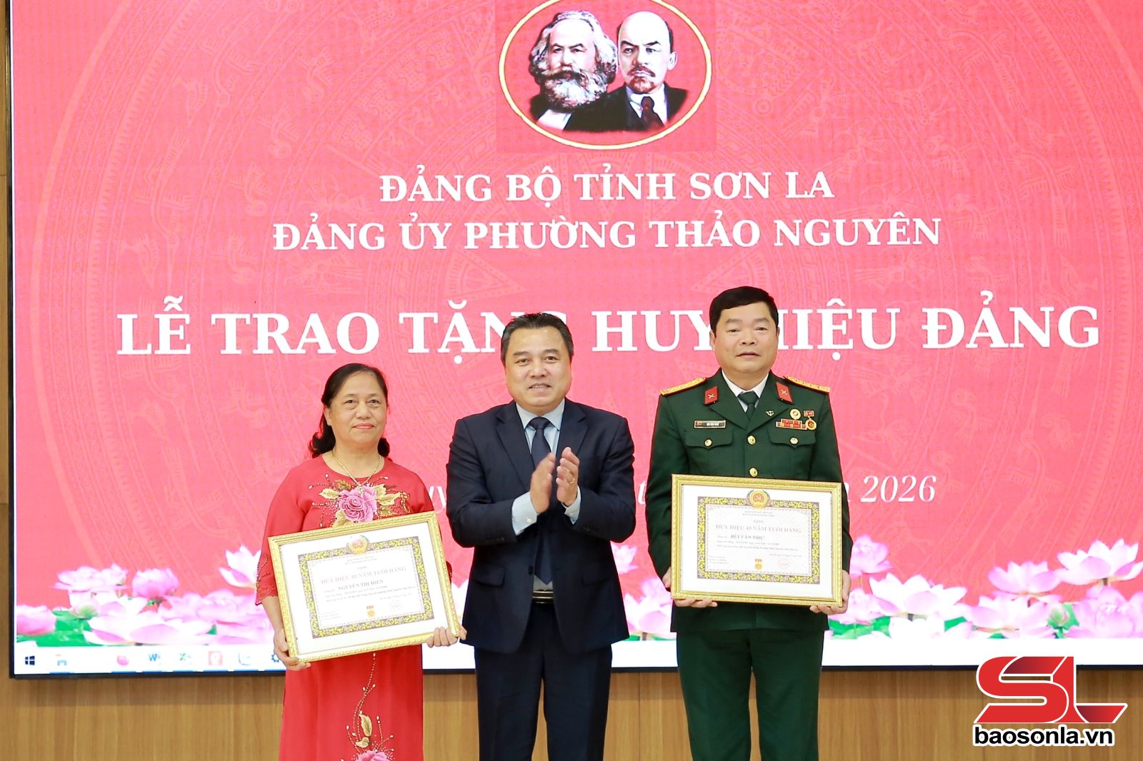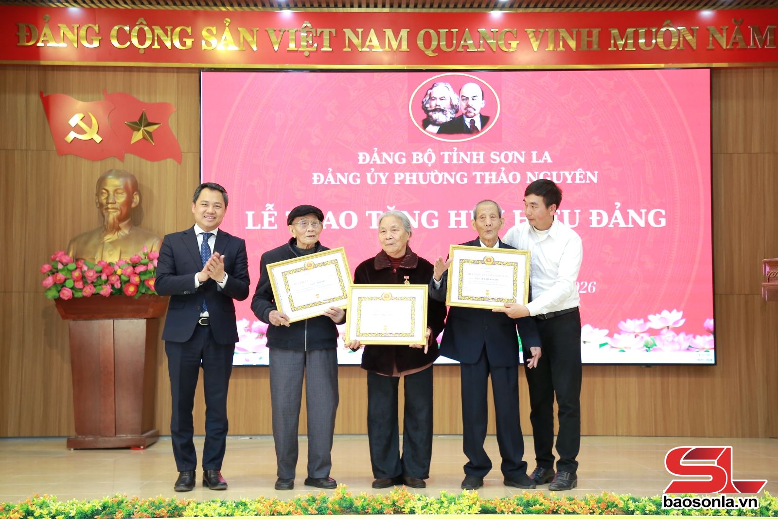 Tại Đảng bộ phường Thảo Nguyên, đồng chí Chủ tịch UBND tỉnh đã trao Huy hiệu 60 năm tuổi Đảng cho 3 đảng viên: Nguyễn Quang Dy, Chi bộ Tổ dân phố 19/8; Khúc Thị Tâm, Chi bộ Tổ dân phố 19/5; Đặng Ngọc Thanh, Chi bộ Tổ dân phố 19/5. Đại diện Đảng ủy phường trao Huy hiệu 40 năm tuổi Đảng cho 3 đảng viên; trao Huy hiệu 30 năm tuổi Đảng cho 7 đảng viên.