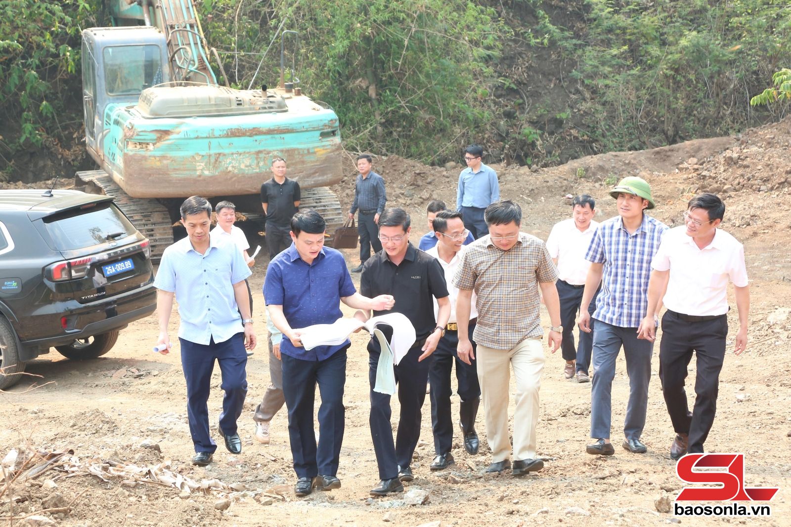 Đồng chí Đặng Ngọc Hậu, Phó Chủ tịch UBND tỉnh cùng đoàn công tác kiểm tra tiến độ thi công tuyến đường.