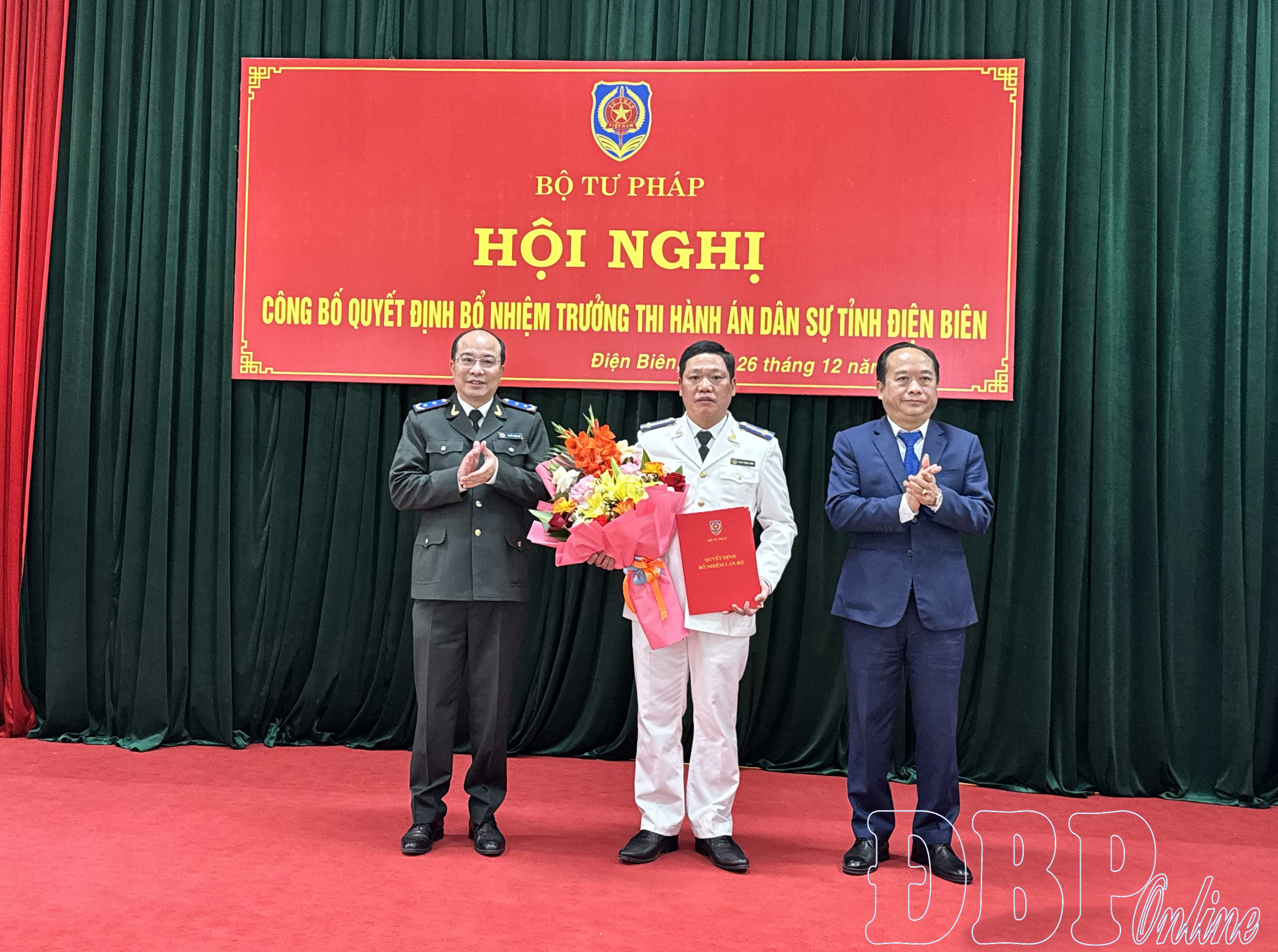 Tại Hội nghị, Ban Tổ chức đã công bố Quyết định của Bộ trưởng Bộ Tư pháp về việc bổ nhiệm đồng chí Đoàn Trọng Ngôn, Chấp hành viên trung cấp, Quyền Trưởng Thi hành án dân sự tỉnh giữ chức vụ Trưởng THADS tỉnh Điện Biên kể từ ngày 15/12/2025. Thời hạn bổ nhiệm là 5 năm.