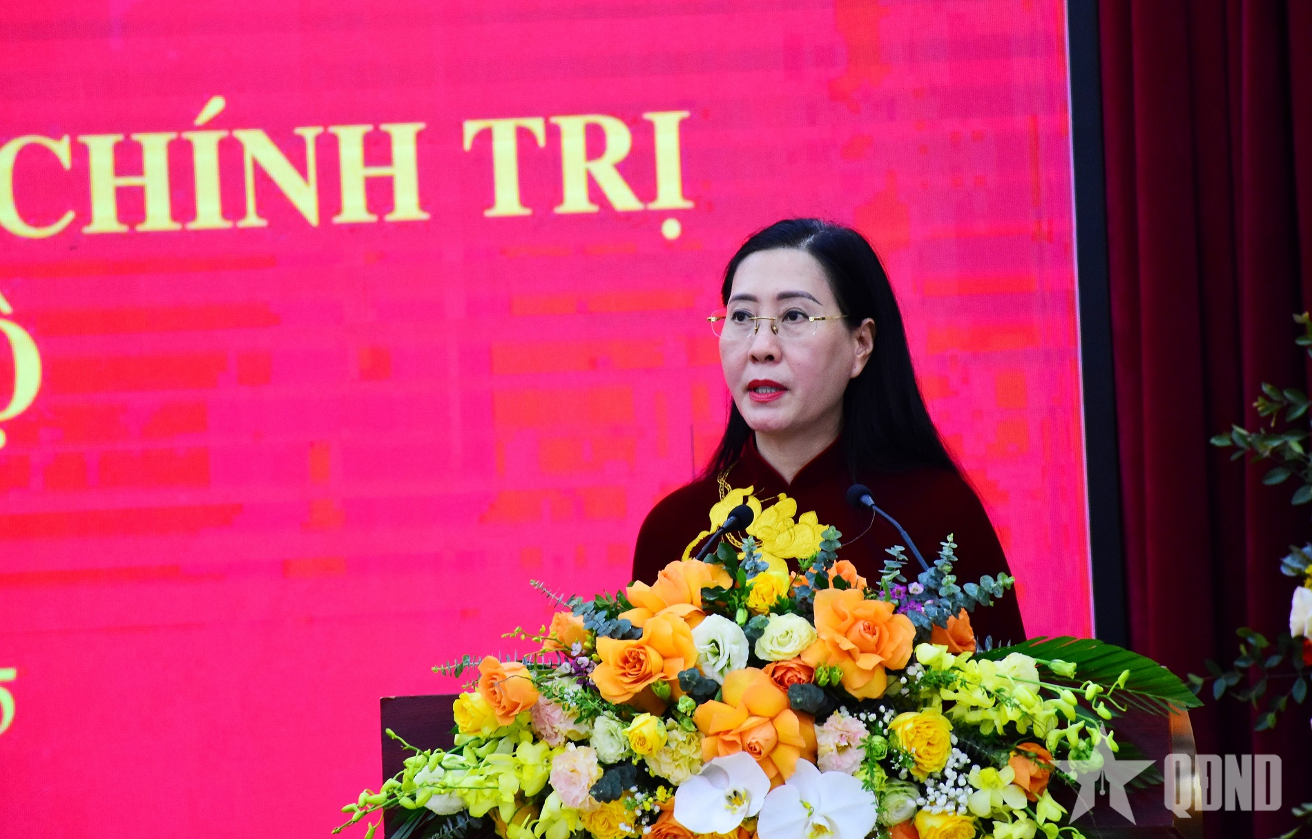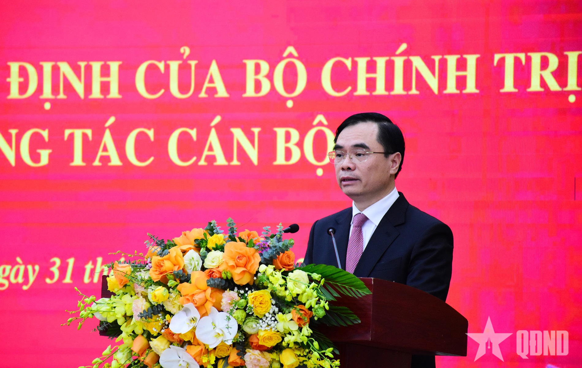 Đồng chí Bùi Thị Quỳnh Vân, Ủy viên Trung ương Đảng, Phó trưởng ban Tổ chức Trung ương công bố quyết định của Bộ Chính trị về công tác cán bộ.