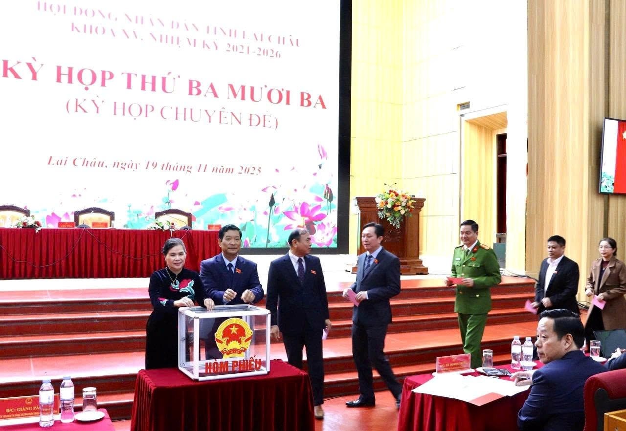 Tại Kỳ họp, bằng hình thức biểu quyết, đại biểu HĐND tỉnh đã thực hiện miễn nhiệm chức vụ Chủ tịch UBND tỉnh Lai Châu nhiệm kỳ 2021 - 2026 đối với đồng chí Lê Văn Lương để nhận nhiệm vụ công tác mới theo quyết định của Ban Bí thư. Đồng chí Lê Văn Lương được điều động, chỉ định giữ chức Phó Bí thư Tỉnh ủy Điện Biên.