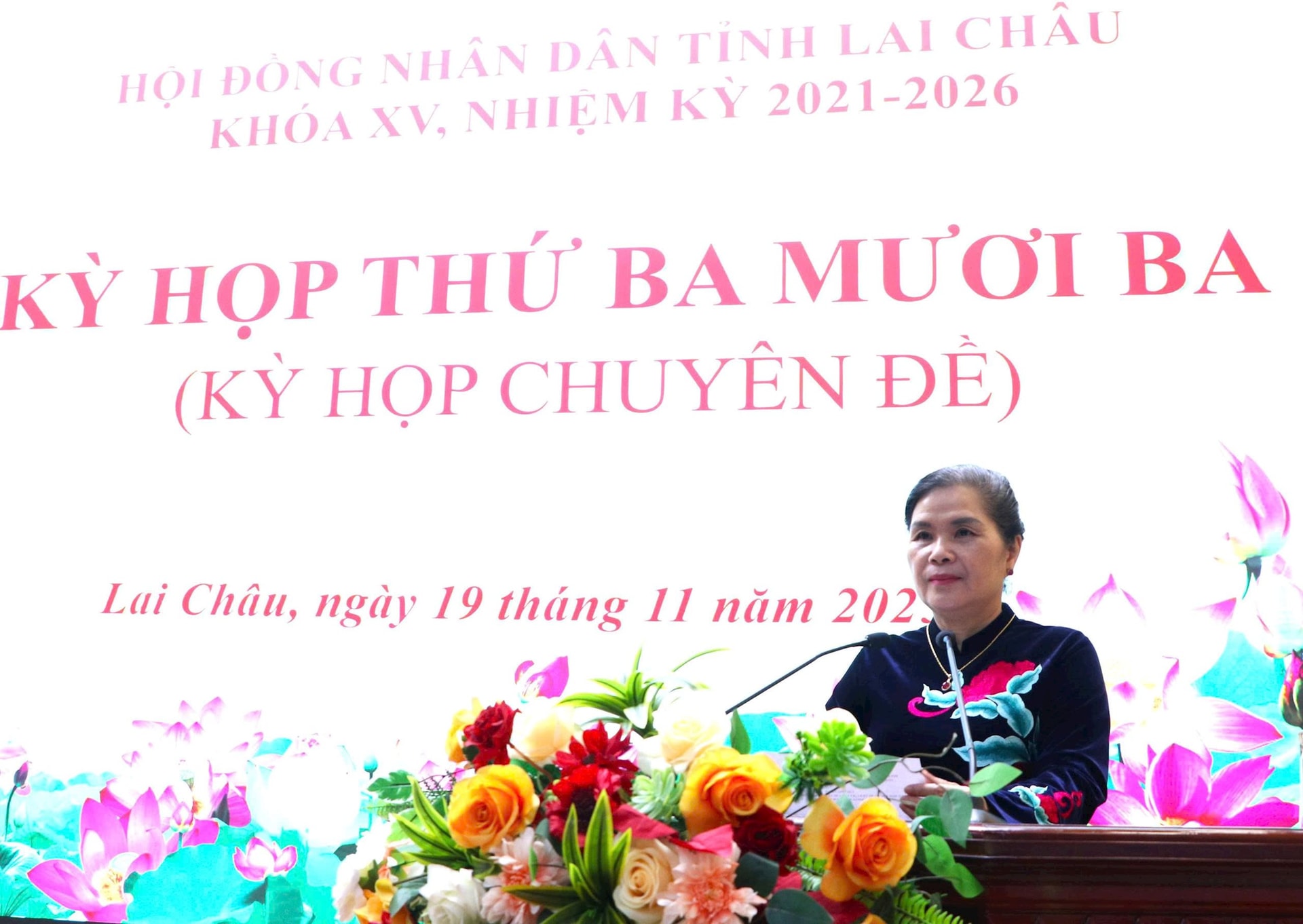 Chủ tịch HĐND tỉnh Lai Châu Giàng Páo Mỷ phát biểu khai mạc Kỳ họp