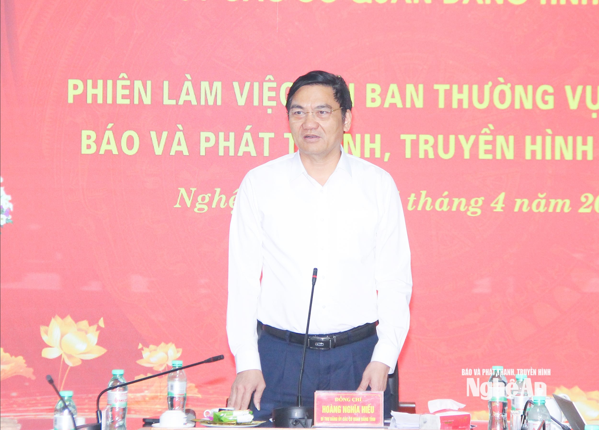 Phát biểu kết luận, đồng chí Hoàng Nghĩa Hiếu - Phó Bí thư Thường trực Tỉnh ủy, Chủ tịch HĐND tỉnh, Bí thư Đảng ủy các cơ quan Đảng tỉnh ghi nhận và đánh giá cao sự nỗ lực, trách nhiệm của cấp ủy, tổ chức Đảng cơ quan Báo và phát thanh, truyền hình Nghệ An trong lãnh đạo ổn định tổ chức bộ máy, làm tốt công tác tư tưởng, xây dựng khối đoàn kết nội bộ sau sáp nhập; đồng thời tích cực đổi mới nội dung, hình thức tuyên truyền, mở rộng đối tượng tiếp cận thông tin, lan tỏa công tác tuyên truyền, định hướng dư luận và xây dựng niềm tin xã hội.