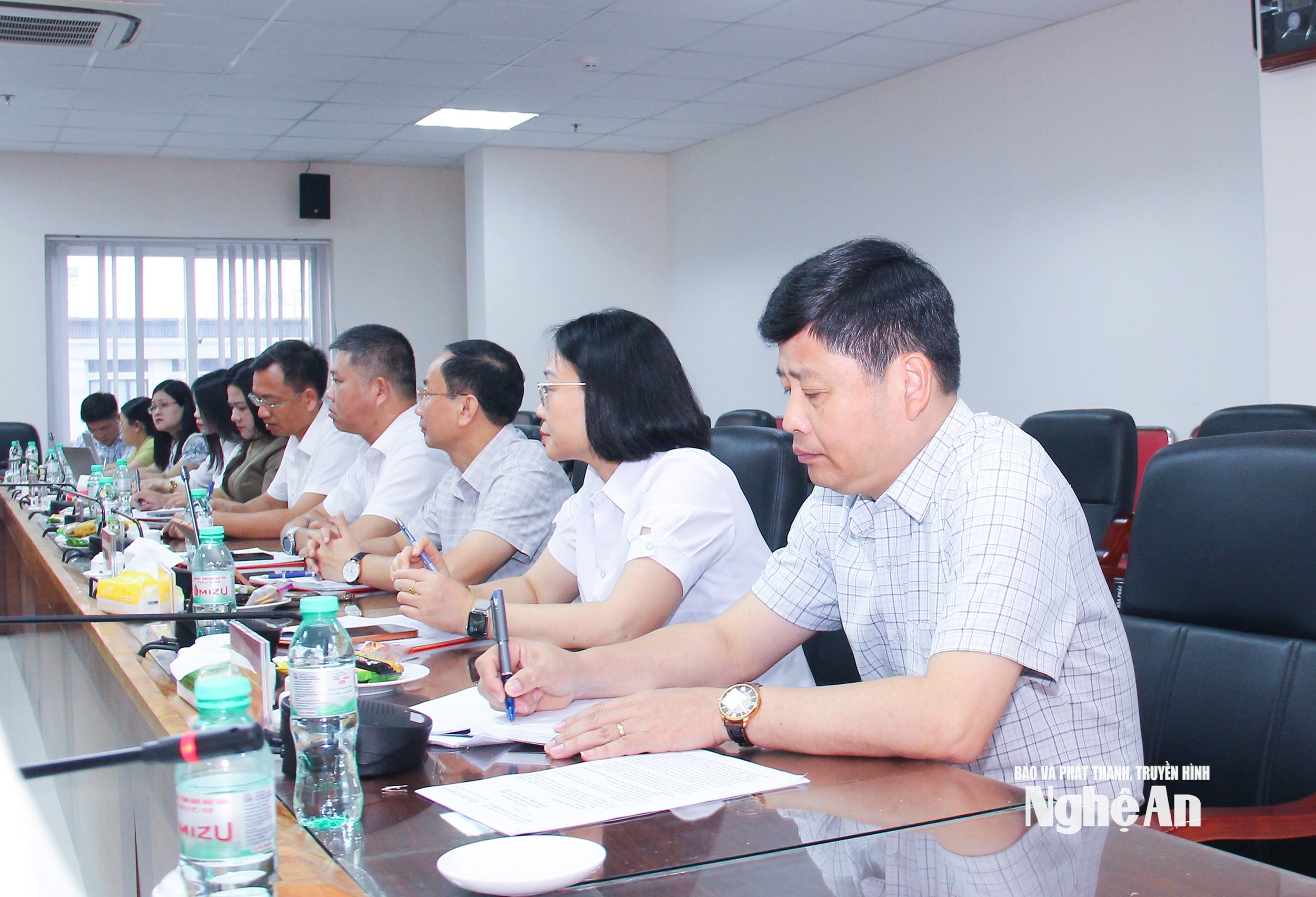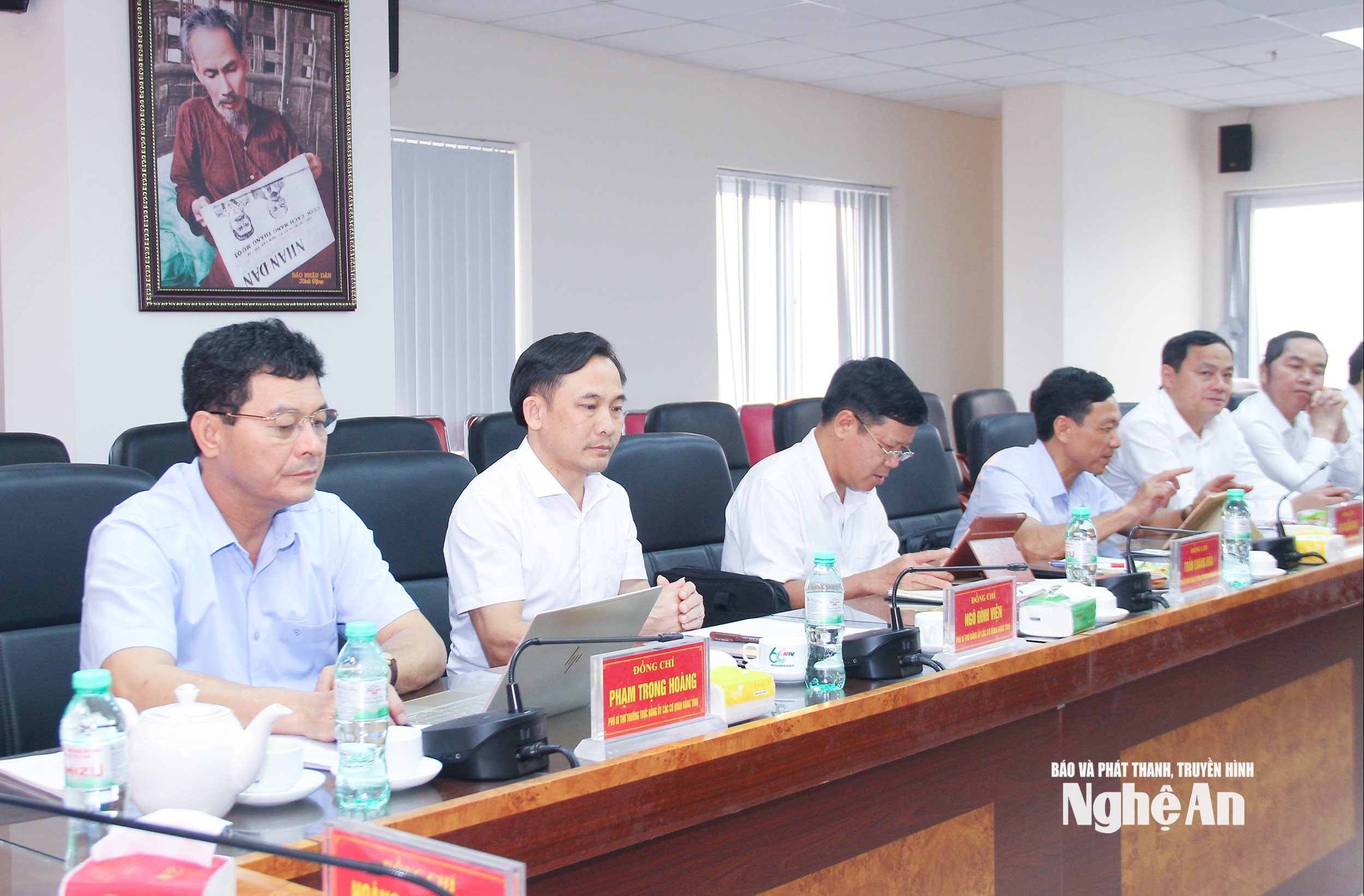 Các đồng chí trong Ban Thường vụ Đảng ủy Báo và phát thanh, truyền hình Nghệ An tham gia cuộc làm việc. Ảnh: Mai Hoa