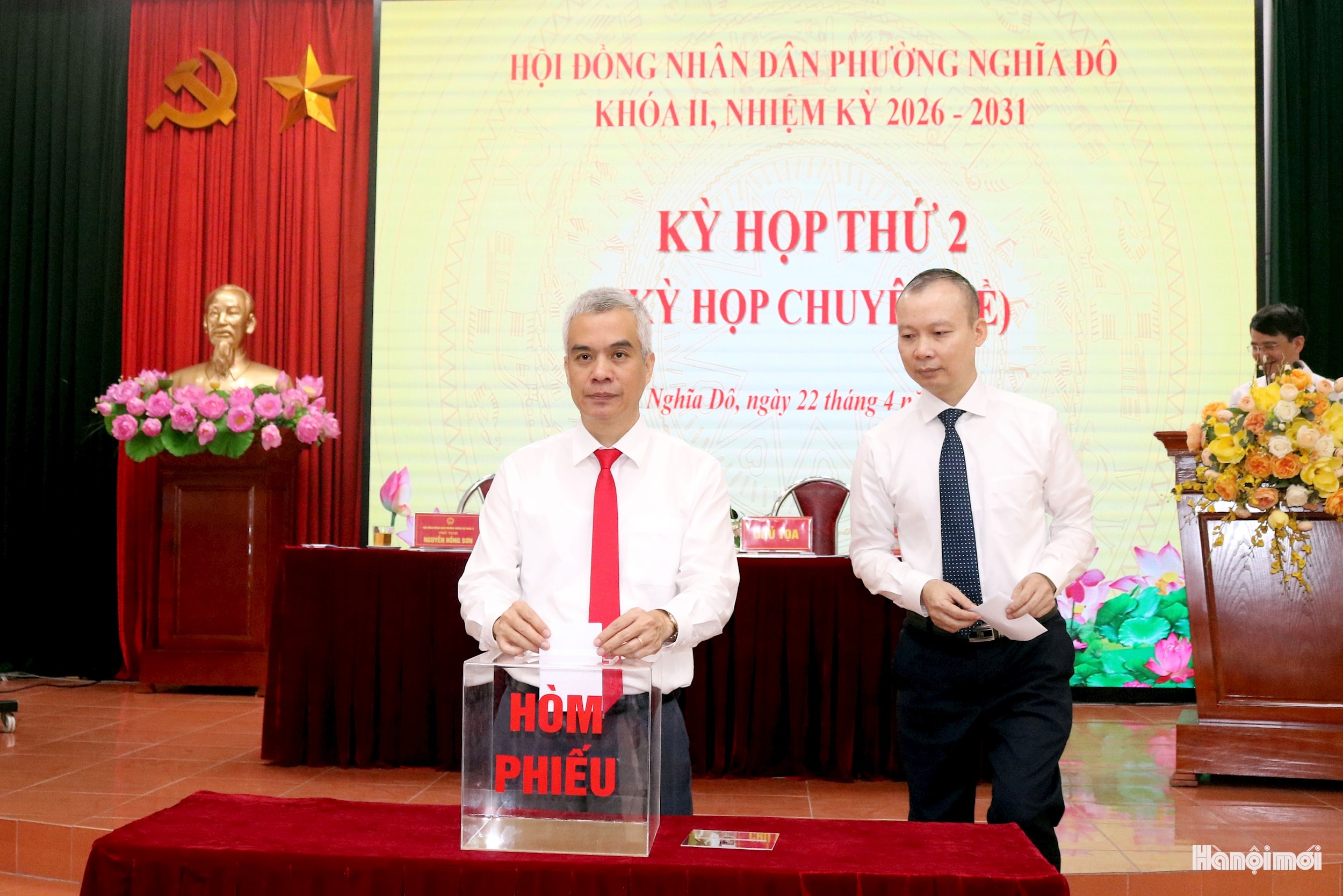 Đại biểu HĐND phường Nghĩa Đô bỏ phiếu bầu chức danh Phó Chủ tịch UBND phường nhiệm kỳ 2026-2031. Ảnh: MT