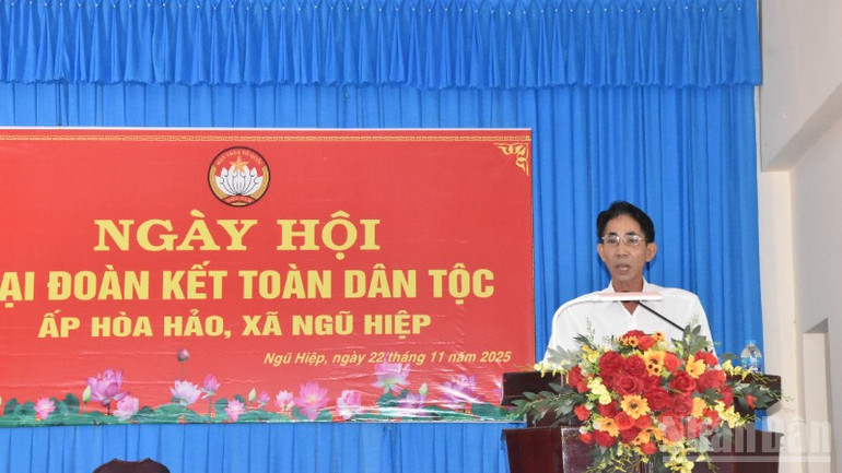 Đồng chí Nguyễn Văn Kiệp, Phó Bí thư Chi bộ, Trưởng Ban công tác Mặt trận ấp Hòa Hảo phát biểu tại Ngày hội.