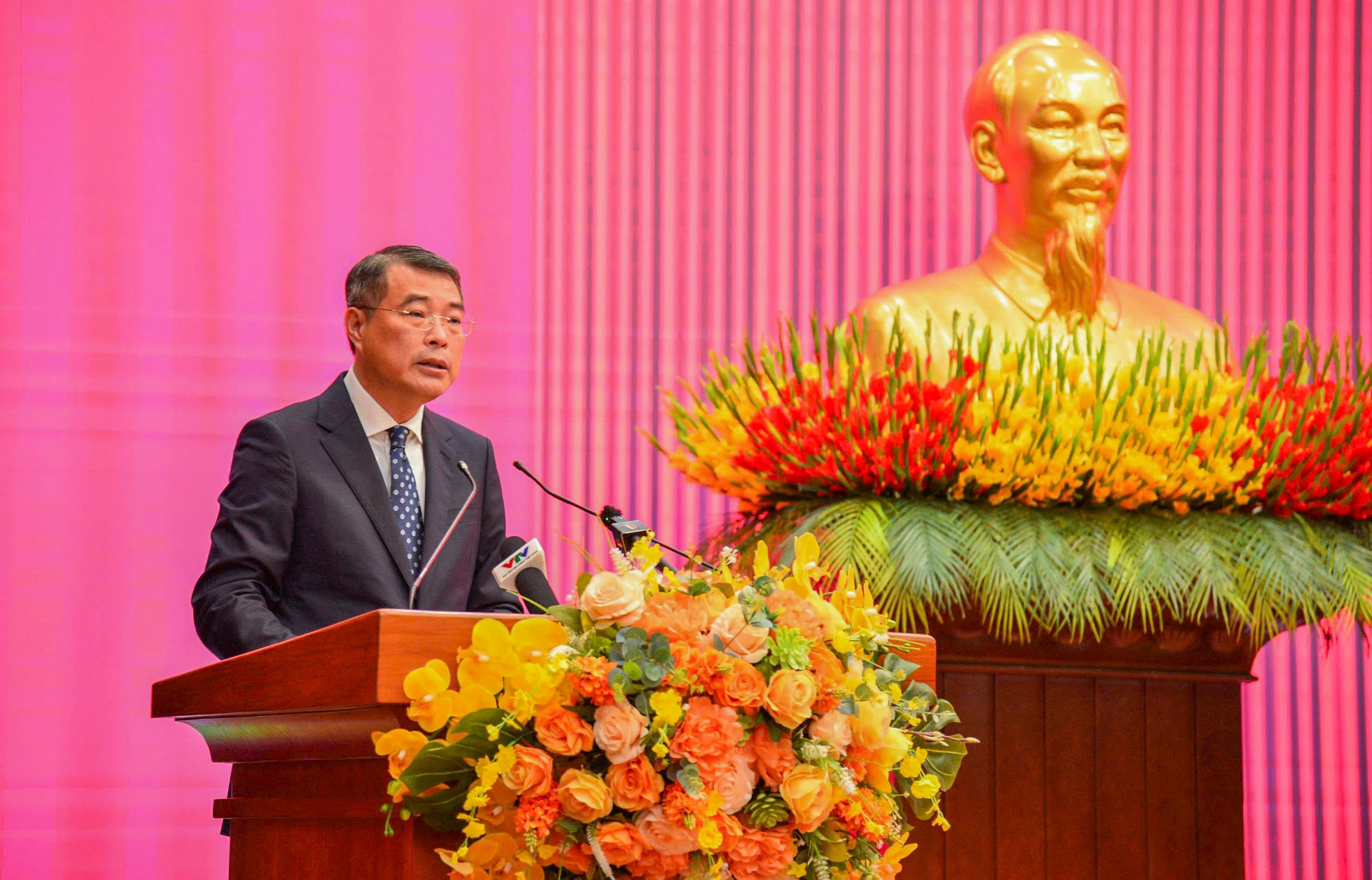 Đồng chí Lê Minh Hưng, Ủy viên Bộ Chính trị, Trưởng Ban Tổ chức Trung ương phát biểu. Ảnh: XUÂN QUỲNH
