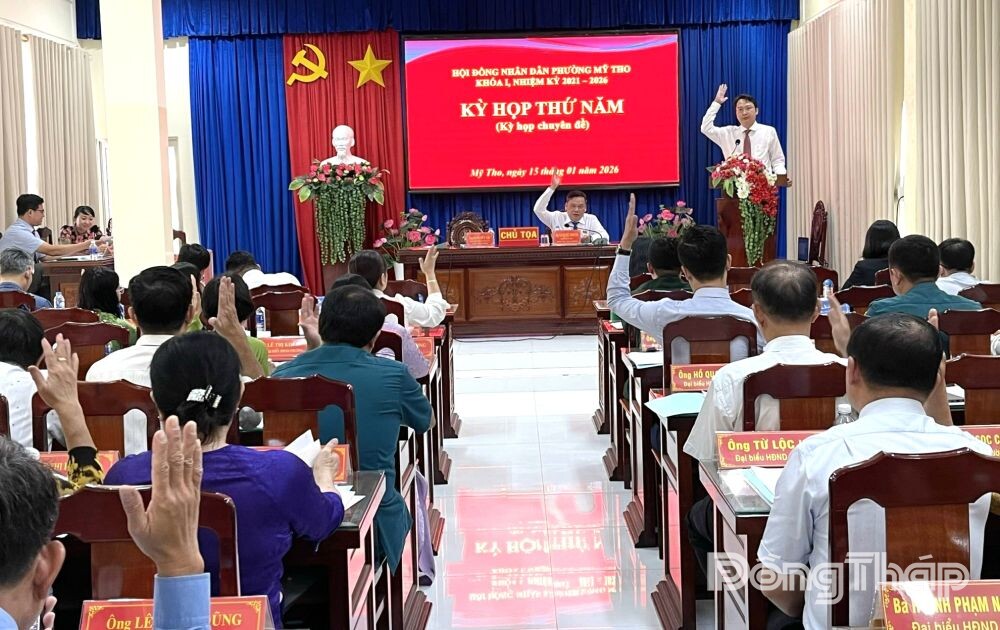 Kỳ họp thứ năm, HĐND phường Mỹ Tho còn thực hiện các thủ tục miễn nhiệm và bầu bổ sung chức danh Chủ tịch UBND phường Mỹ Tho nhiệm kỳ 2021 - 2026.
