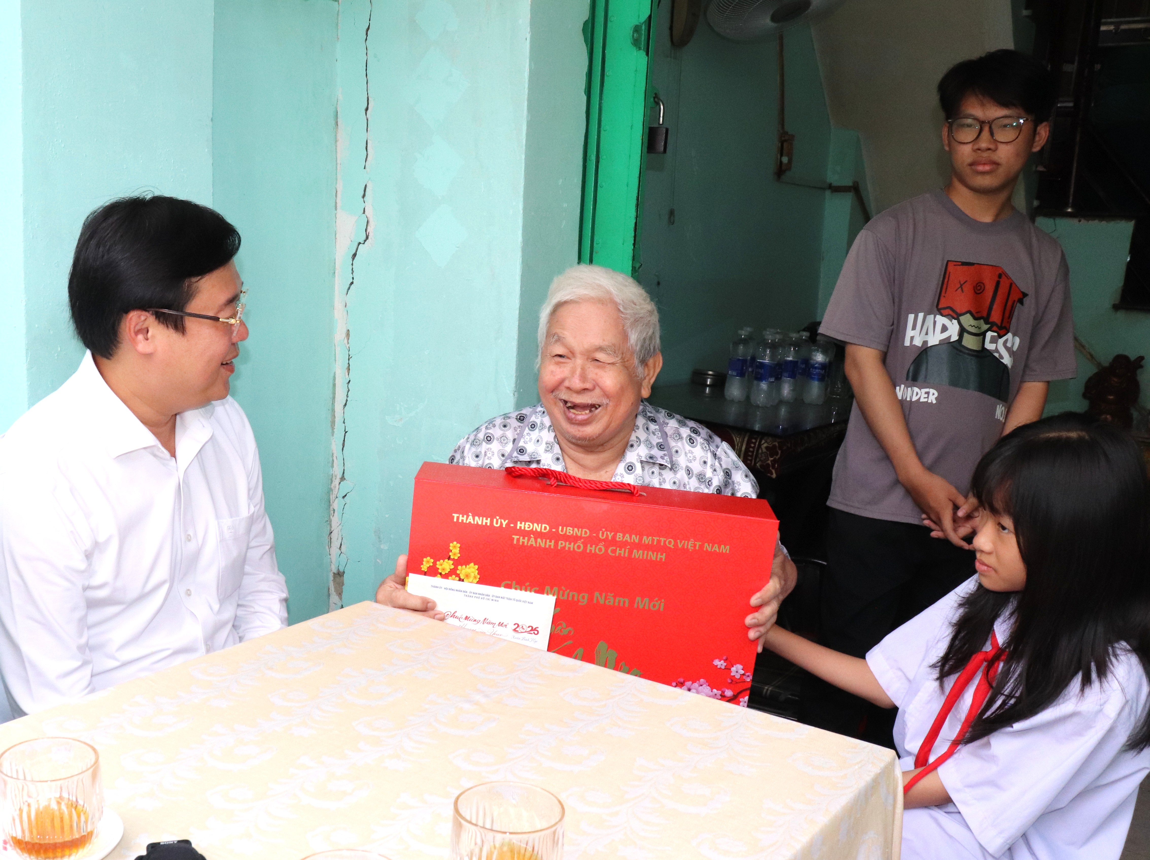Đồng chí Lê Quốc Phong thăm hỏi, chúc tết gia đình người dân có hoàn cảnh khó khăn trên địa bàn phường Bình Phú