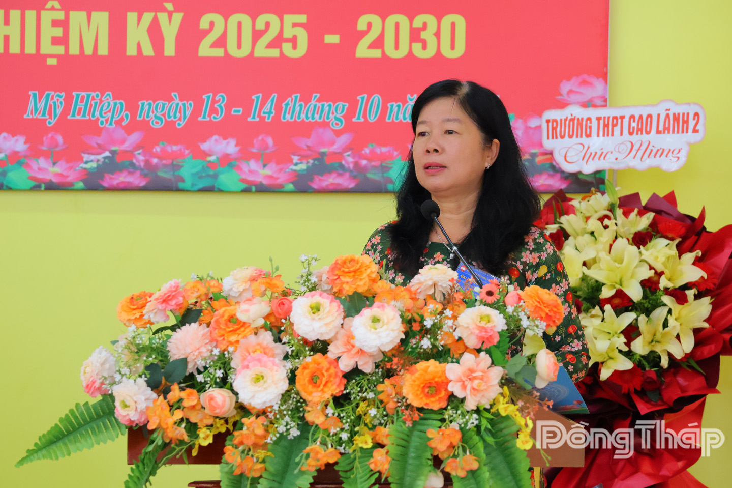 Đồng chí Huỳnh Thị Tuyết Vui, Tỉnh ủy viên, Phó Chủ tịch Ủy ban Mặt trận Tổ quốc Việt Nam tỉnh, Chủ tịch Liên đoàn Lao động tỉnh Đồng Tháp phát biểu tại Đại hội.