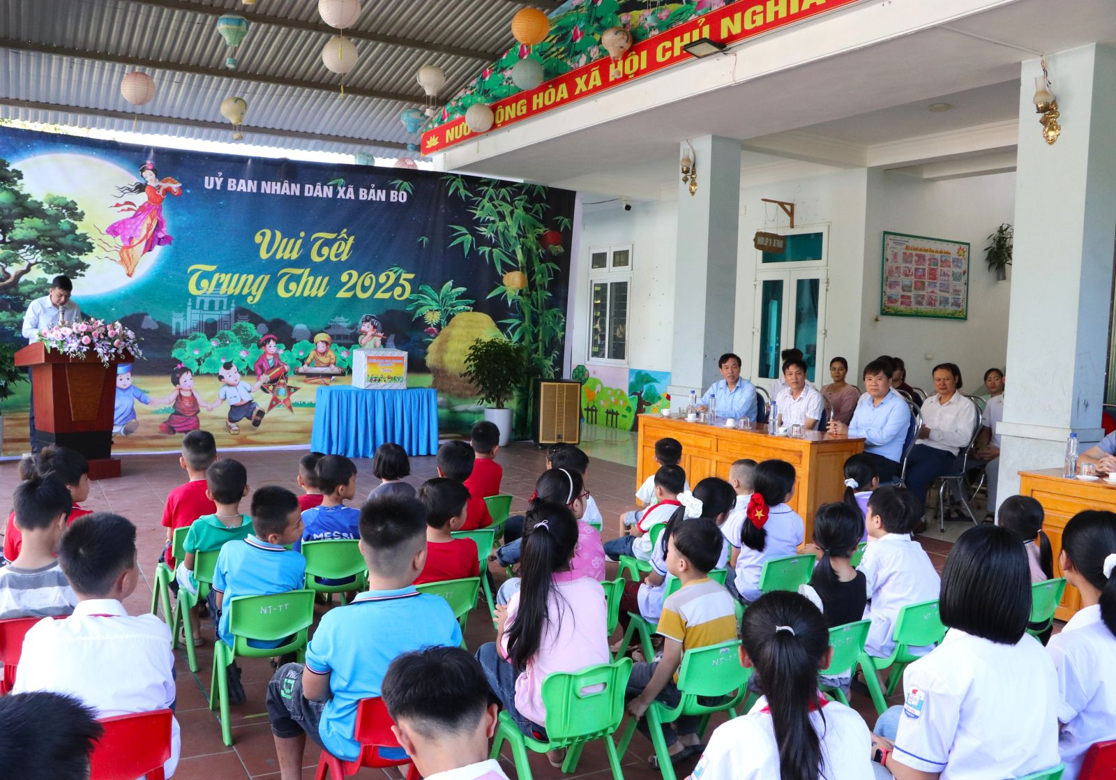 Tại xã Bản Bo, đồng chí Chủ tịch UBND tỉnh và Đoàn công tác của tỉnh đã nghe báo cáo về công tác chuẩn bị tổ chức Tết Trung thu năm 2025 trên địa bàn xã. Theo đó, năm nay, xã Bản Bo tổ chức tết trung thu với nội dung phong phú, ý nghĩa. Xã đẩy mạnh truyền thông, giáo dục pháp luật về quyền trẻ em, tổ chức các hoạt động “Đêm hội trăng rằm” tại 2 điểm trường chính: Trung học cơ sở Bản Bo; Tiểu học và Trung học cơ sở Nà Tăm cùng với hoạt động vui chơi tại các bản từ ngày 4–6/10.