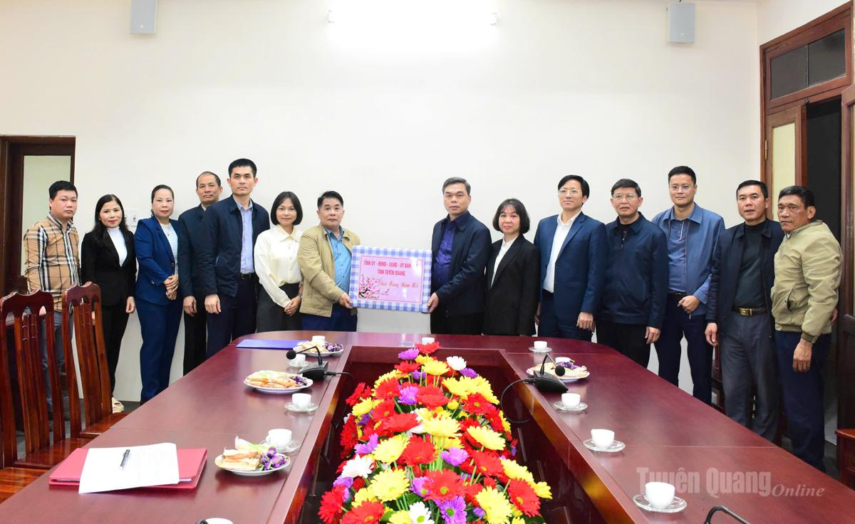 Đồng chí Ma Thế Hồng, Phó Bí thư Tỉnh ủy, Chủ tịch Ủy ban MTTQ Việt Nam tỉnh Tuyên Quang trao quà Tết của tỉnh cho Công ty cổ phần Dịch vụ môi trường và Quản lý đô thị Tuyên Quang.
