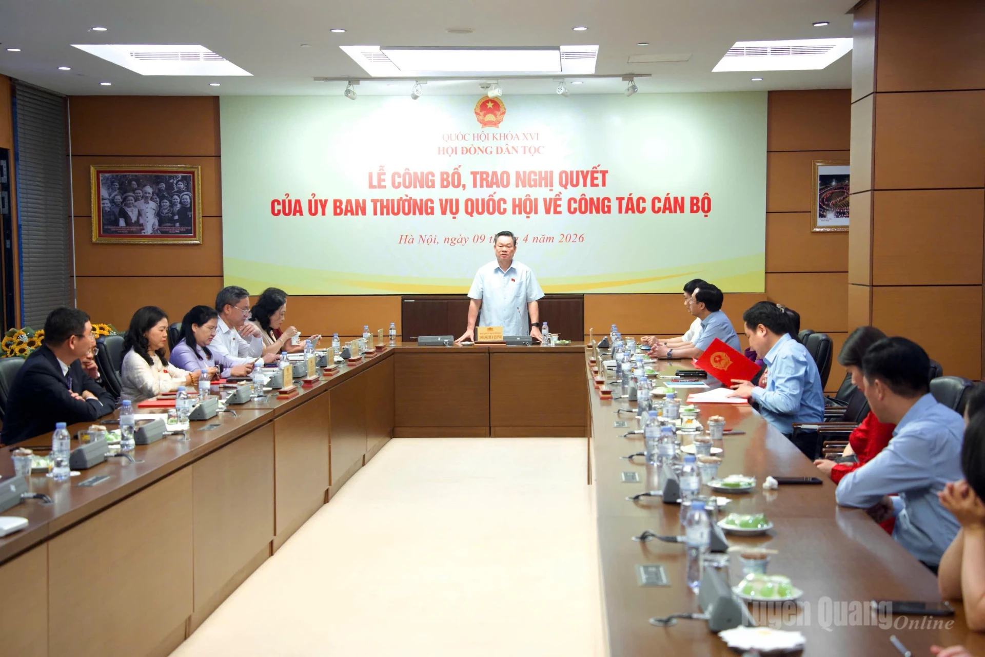 Căn cứ Luật Tổ chức Quốc hội và Quy chế làm việc của Ủy ban Thường vụ Quốc hội, ngày 6/4/2026, Ủy ban Thường vụ Quốc hội đã ban hành Nghị quyết phê chuẩn chức danh Ủy viên là đại biểu Quốc hội hoạt động chuyên trách tại Hội đồng Dân tộc Khóa XVI.
