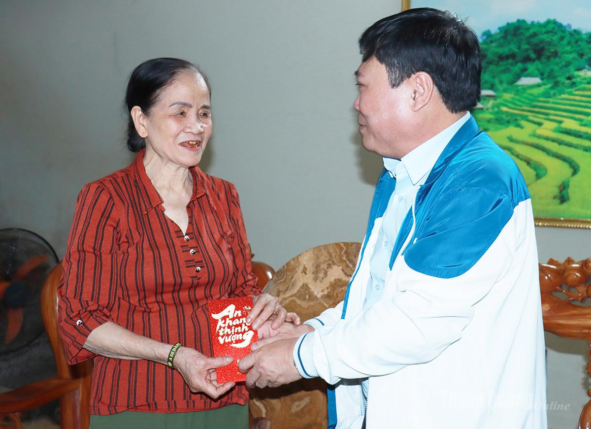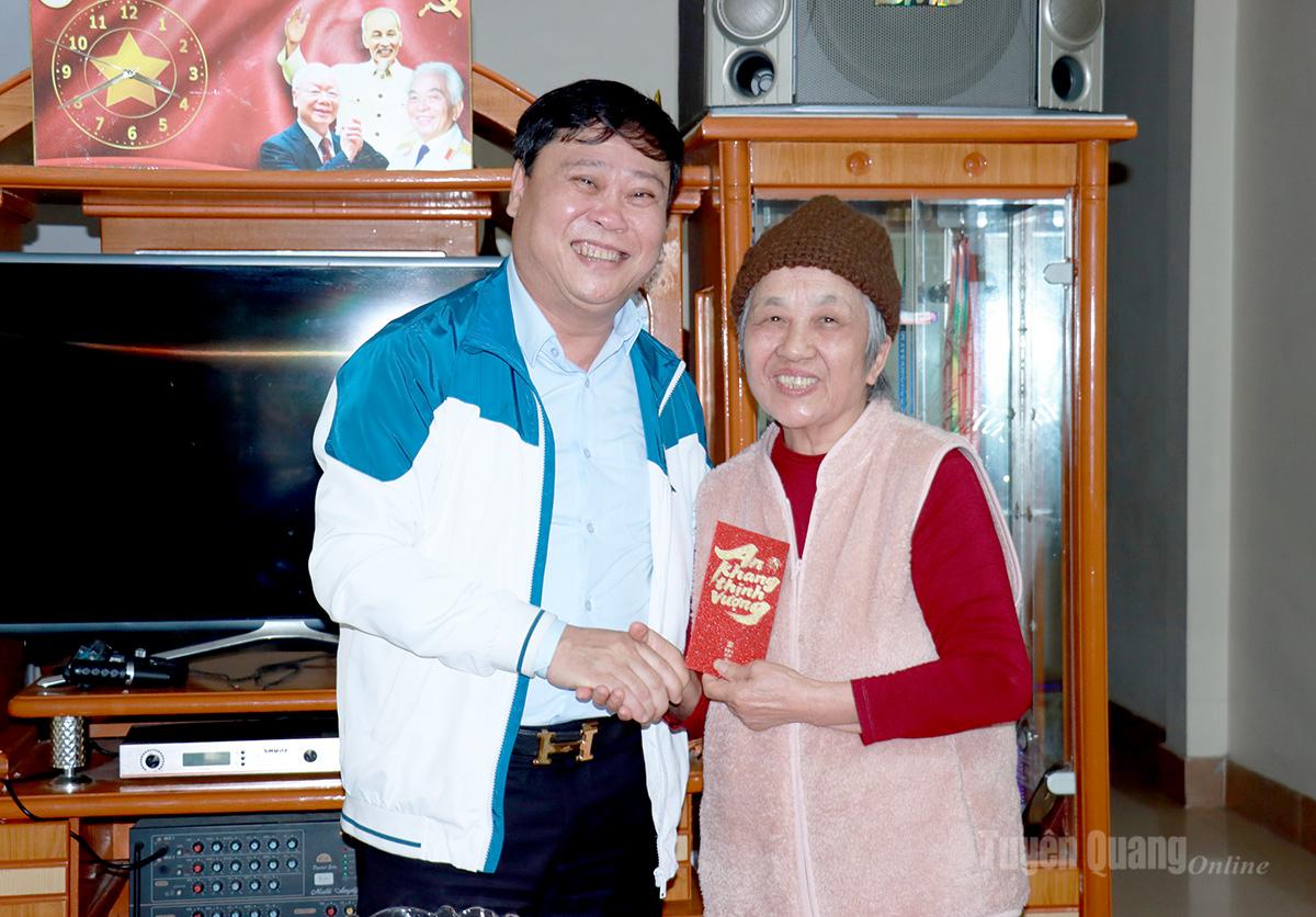 Đồng chí Mai Đức Thông, Giám đốc Báo và phát thanh, truyền hình tỉnh chúc Tết đồng chí Đinh Thị Ty, nguyên Phó trưởng Đài Truyền thanh Hà Giang.