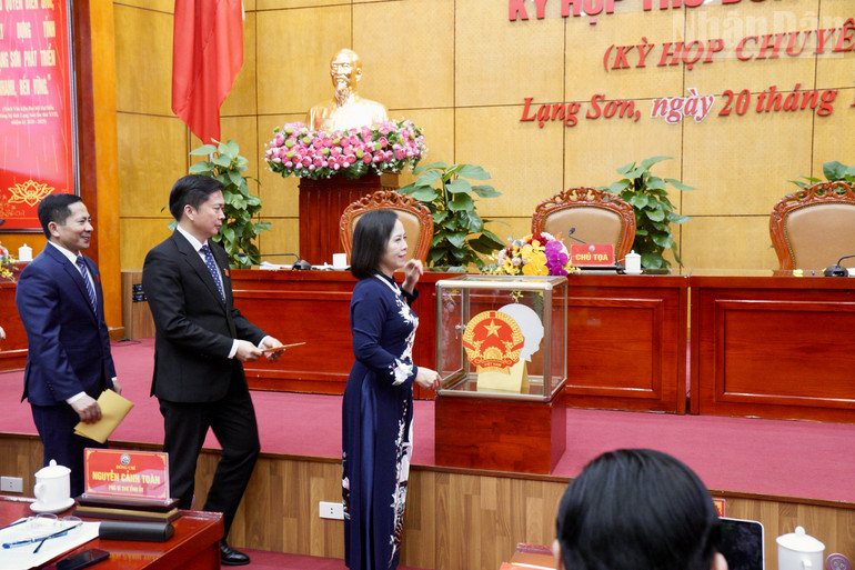 Các đại biểu Hội đồng nhân dân tỉnh Lạng Sơn tiến hành bầu chức danh Chủ tịch Ủy ban nhân dân tỉnh Lạng Sơn khóa 17, nhiệm kỳ 2021-2026.