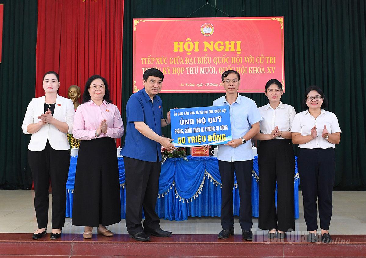 Nhân dịp này, Ủy ban Văn hóa và Xã hội của Quốc hội đã ủng hộ Quỹ phòng, chống thiên tai phường An Tường 50 triệu đồng.