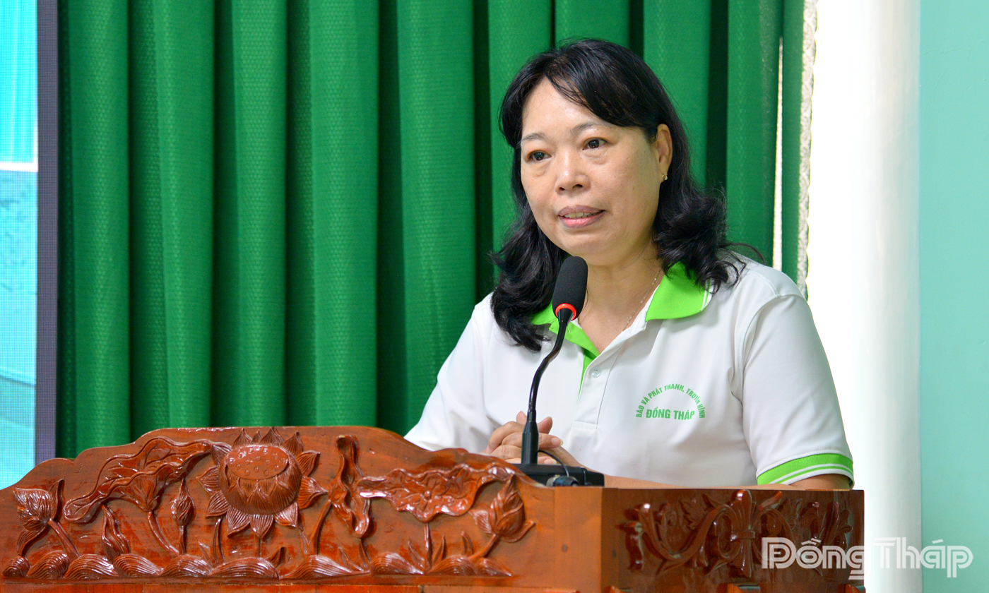 Đồng chí Ngô Thị Ngọc Hạnh, Bí thư Đảng ủy, Tổng Biên tập Báo và phát thanh, truyền hình Đồng Tháp phát biểu tại hội nghị.