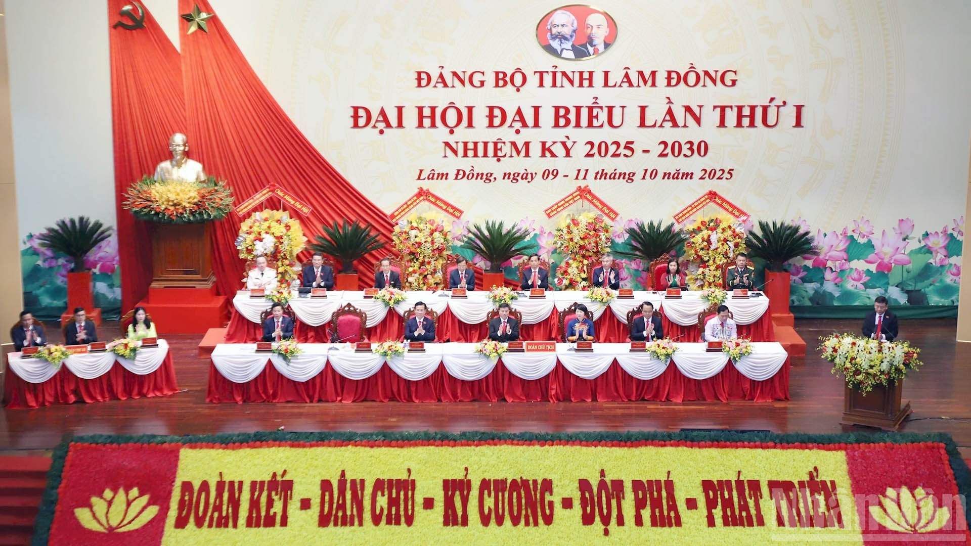 Đoàn Chủ tịch điều hành Đại hội đại biểu Đảng bộ tỉnh Lâm Đồng lần thứ I, nhiệm kỳ 2025-2030.