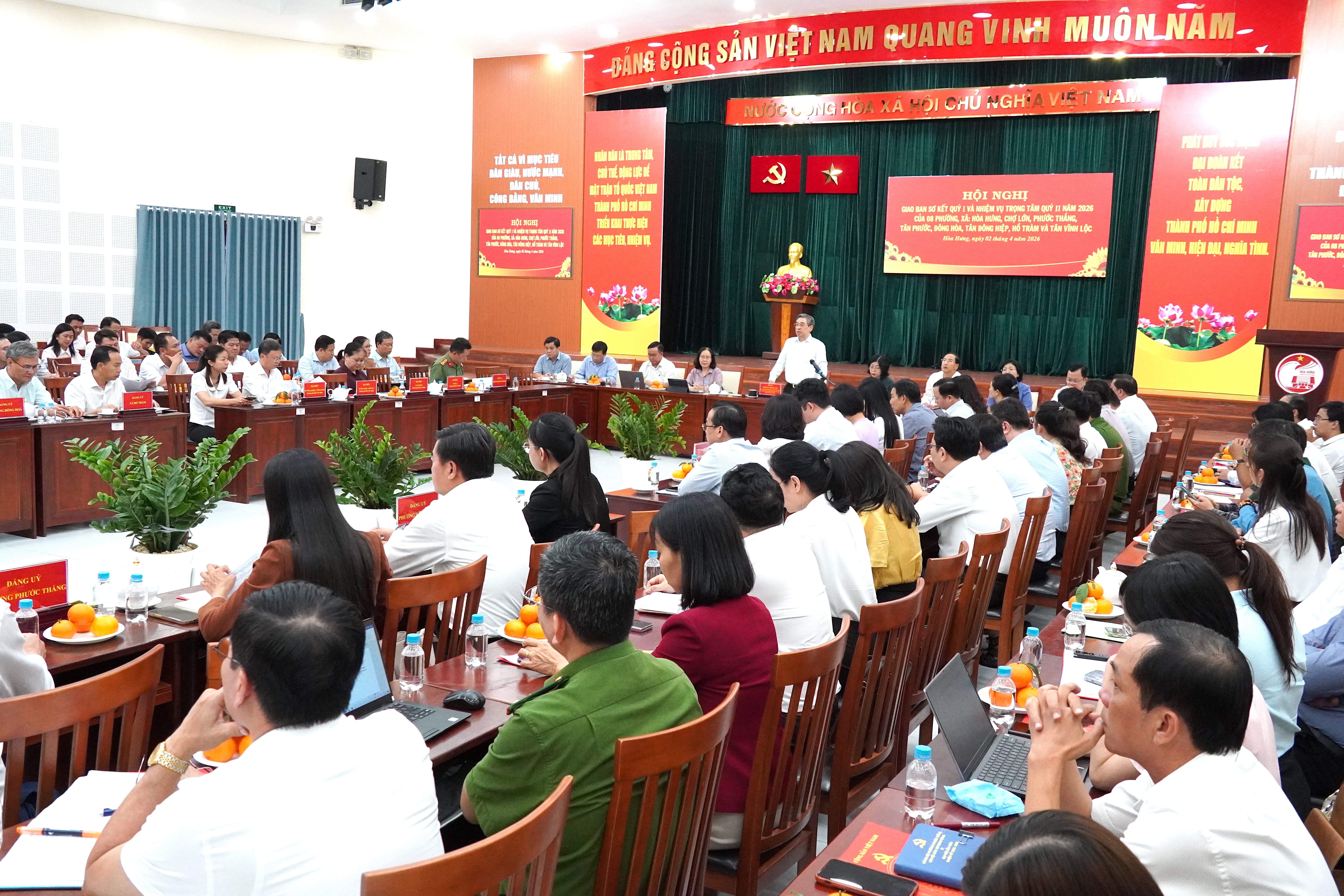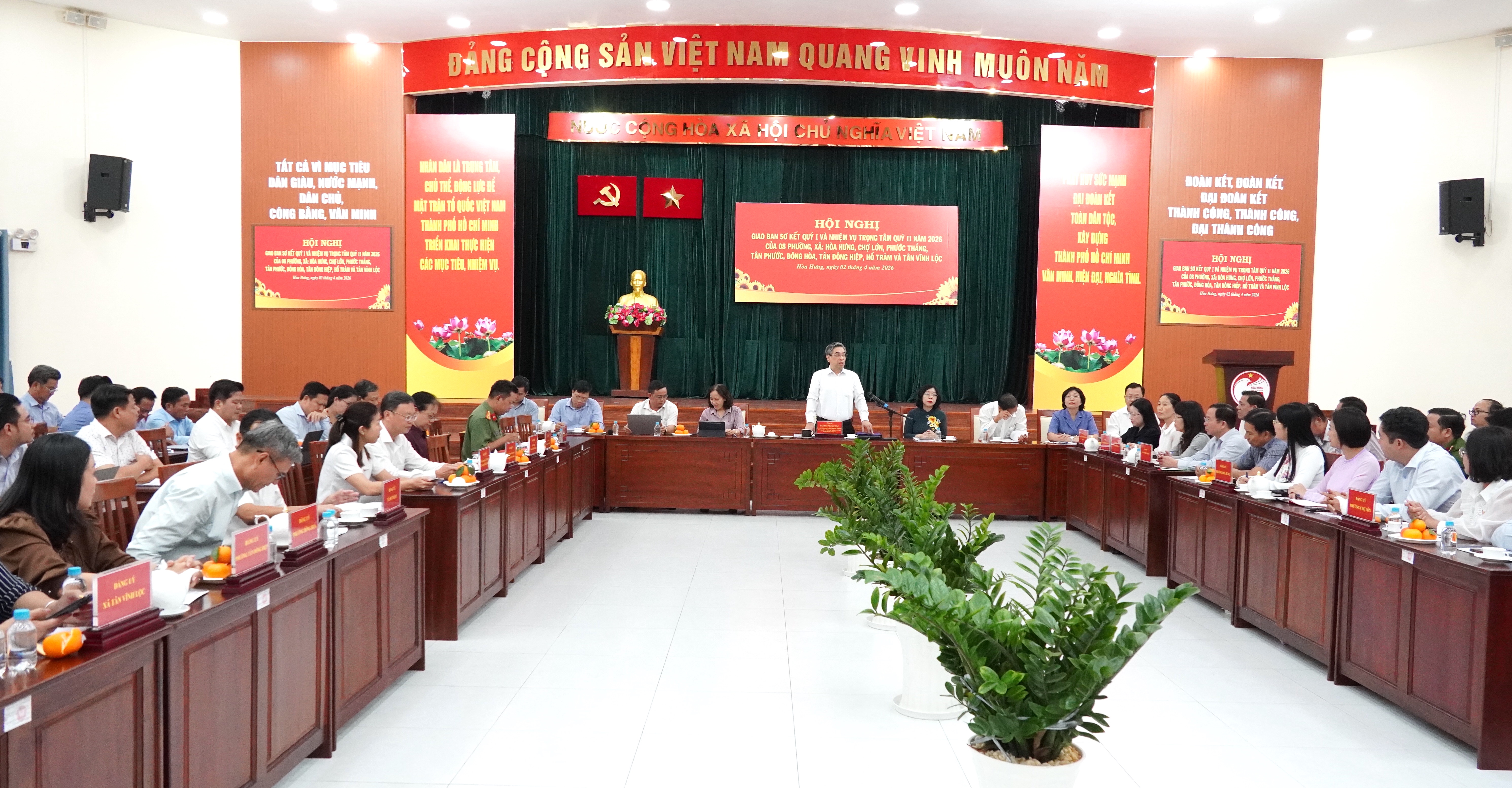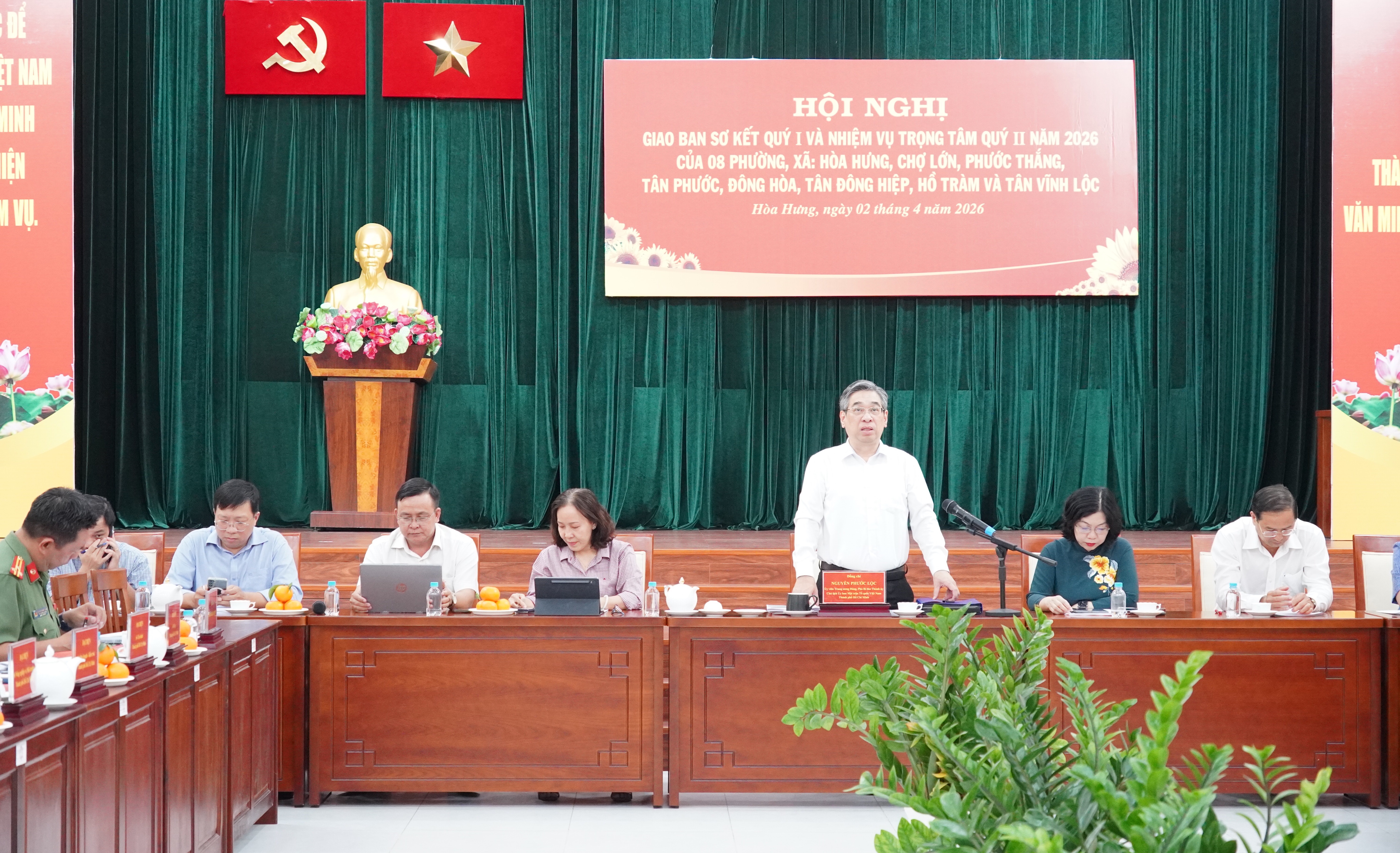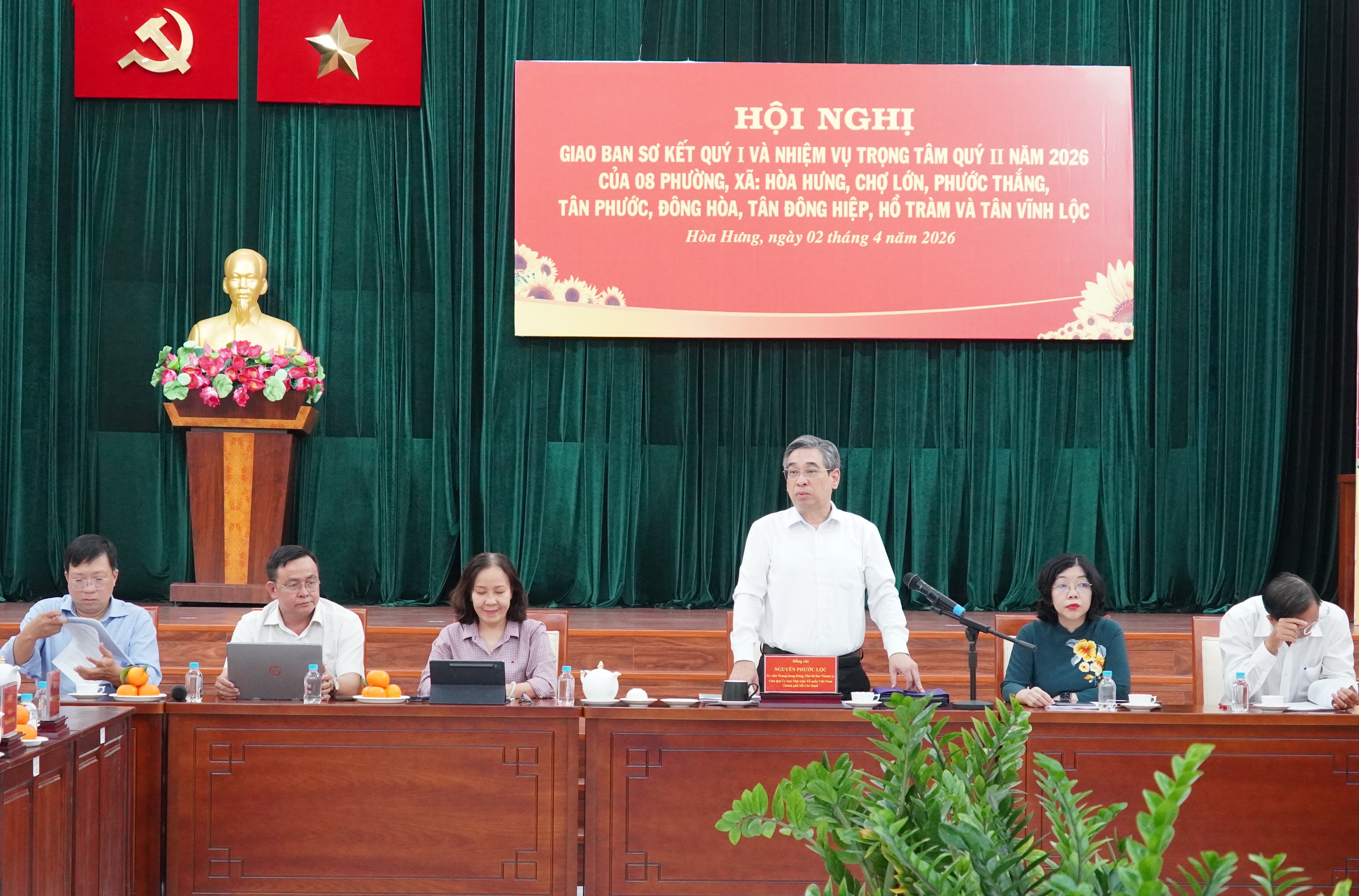 Ngày 2-4, đồng chí Nguyễn Phước Lộc, Ủy viên Trung ương Đảng, Phó Bí thư Thành ủy, Chủ tịch Ủy ban MTTQ Việt Nam TPHCM chủ trì hội nghị giao ban sơ kết quý 1 và nhiệm vụ trọng tâm quý 2-2026 của 8 phường, xã: Hòa Hưng, Chợ Lớn, Phước Thắng, Tân Phước, Đông Hòa, Tân Đông Hiệp, Hồ Tràm và Tân Vĩnh Lộc.