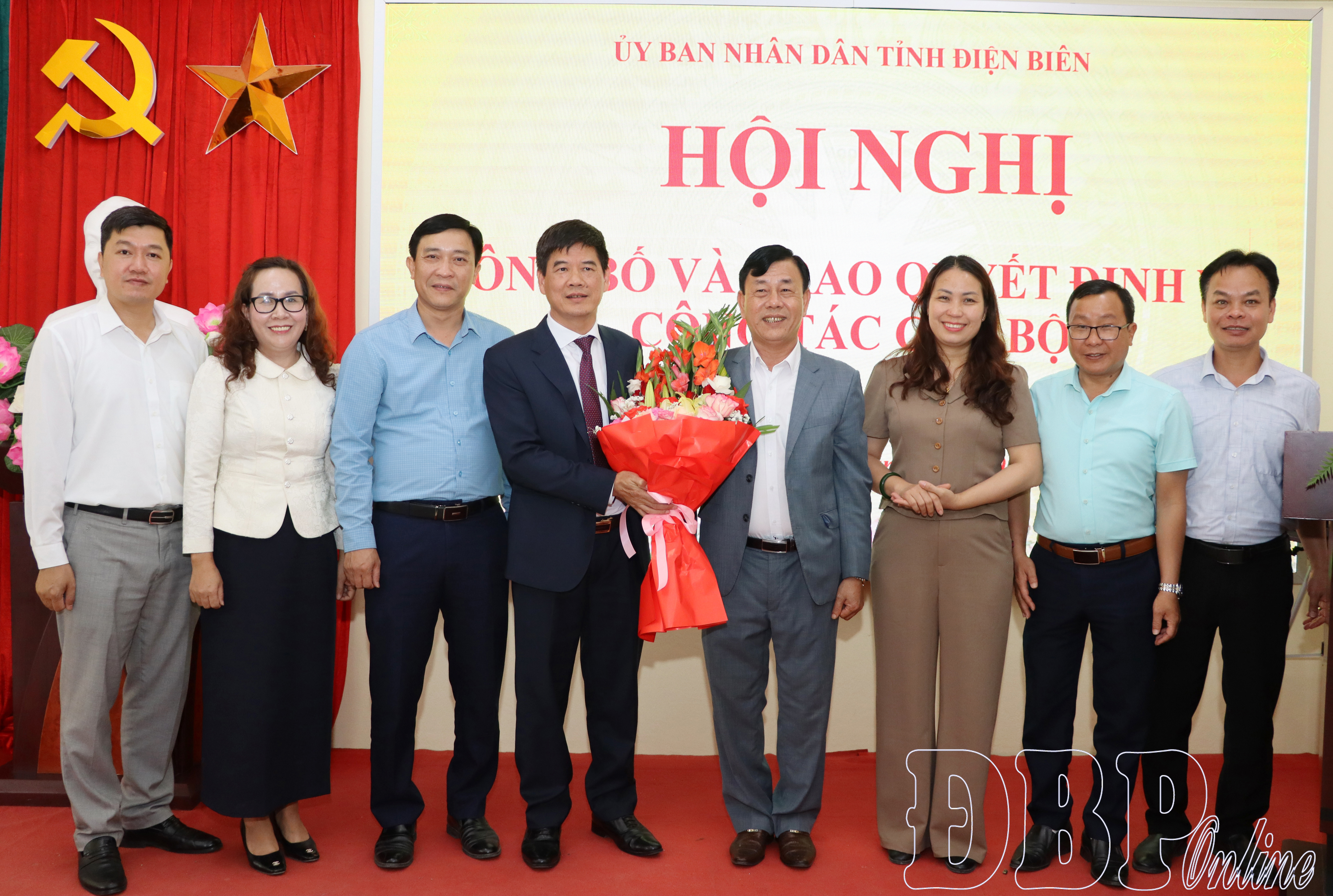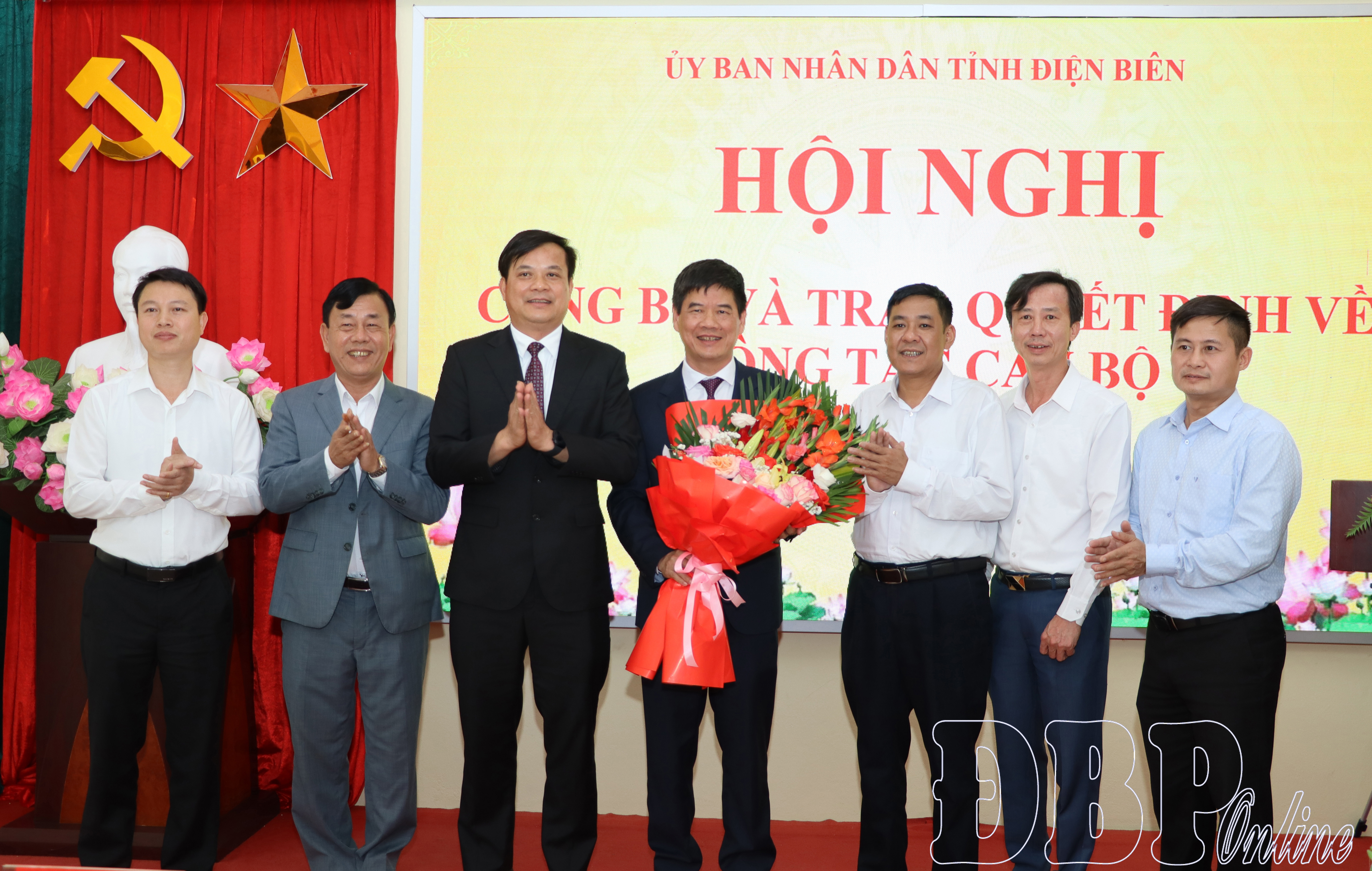 Lãnh đạo UBND tỉnh và các sở, ngành chúc mừng đồng chí Nguyễn Thái Bình, Giám đốc Ban Quản lý dự án các công trình NN&PTTN Điện Biên.