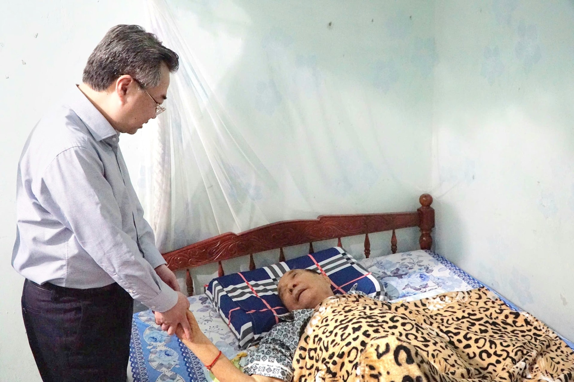 Đồng chí Nguyễn Thanh Nghị đến thăm cựu chiến binh Hoàng Khắc Sỹ bị nhiễm chất độc hóa học.