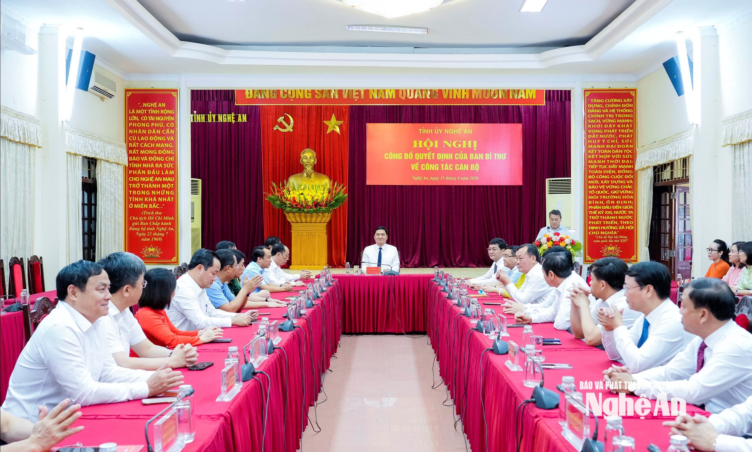 Sáng 15/4, Tỉnh ủy Nghệ An tổ chức Hội nghị công bố quyết định của Ban Bí thư về công tác cán bộ. Đồng chí Hoàng Nghĩa Hiếu - Phó Bí thư Thường trực Tỉnh ủy, Chủ tịch HĐND tỉnh chủ trì hội nghị.