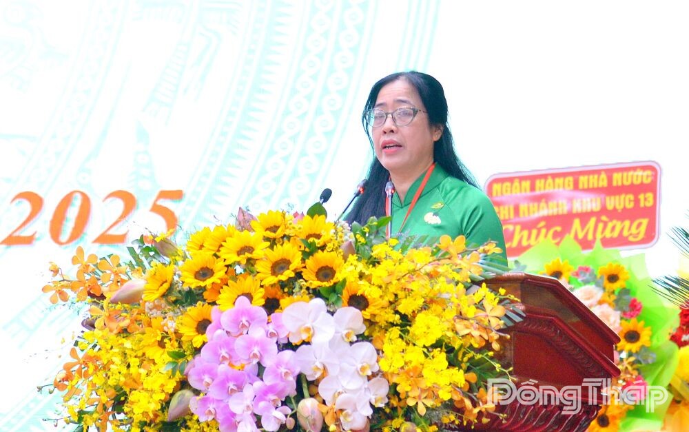 Đồng chí Nguyễn Thị Hồng Phượng, Chủ tịch Ban Chấp hành Hội Nông dân tỉnh Đồng Tháp khóa I, nhiệm kỳ 2025 - 2030 phát biểu tại Đại hội.