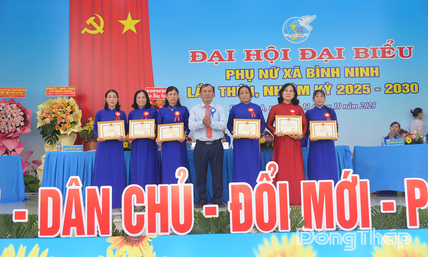 Lãnh đạo Hội Liên hiệp Phụ nữ tỉnh, địa phương tặng hoa chúc mừng Ban Chấp hành Hội Liên hiệp Phụ nữ xã Bình Ninh nhiệm kỳ 2025 - 2030.