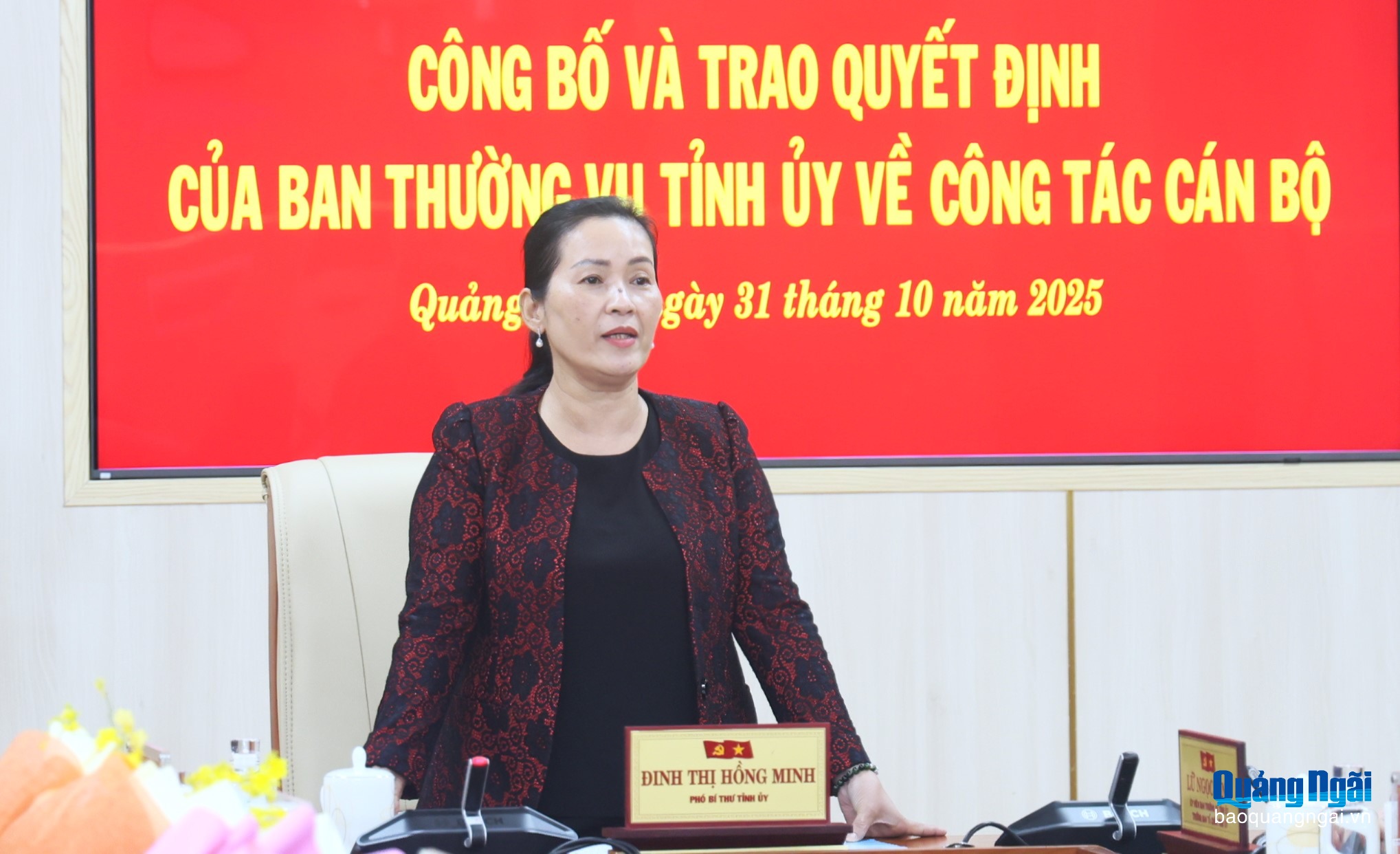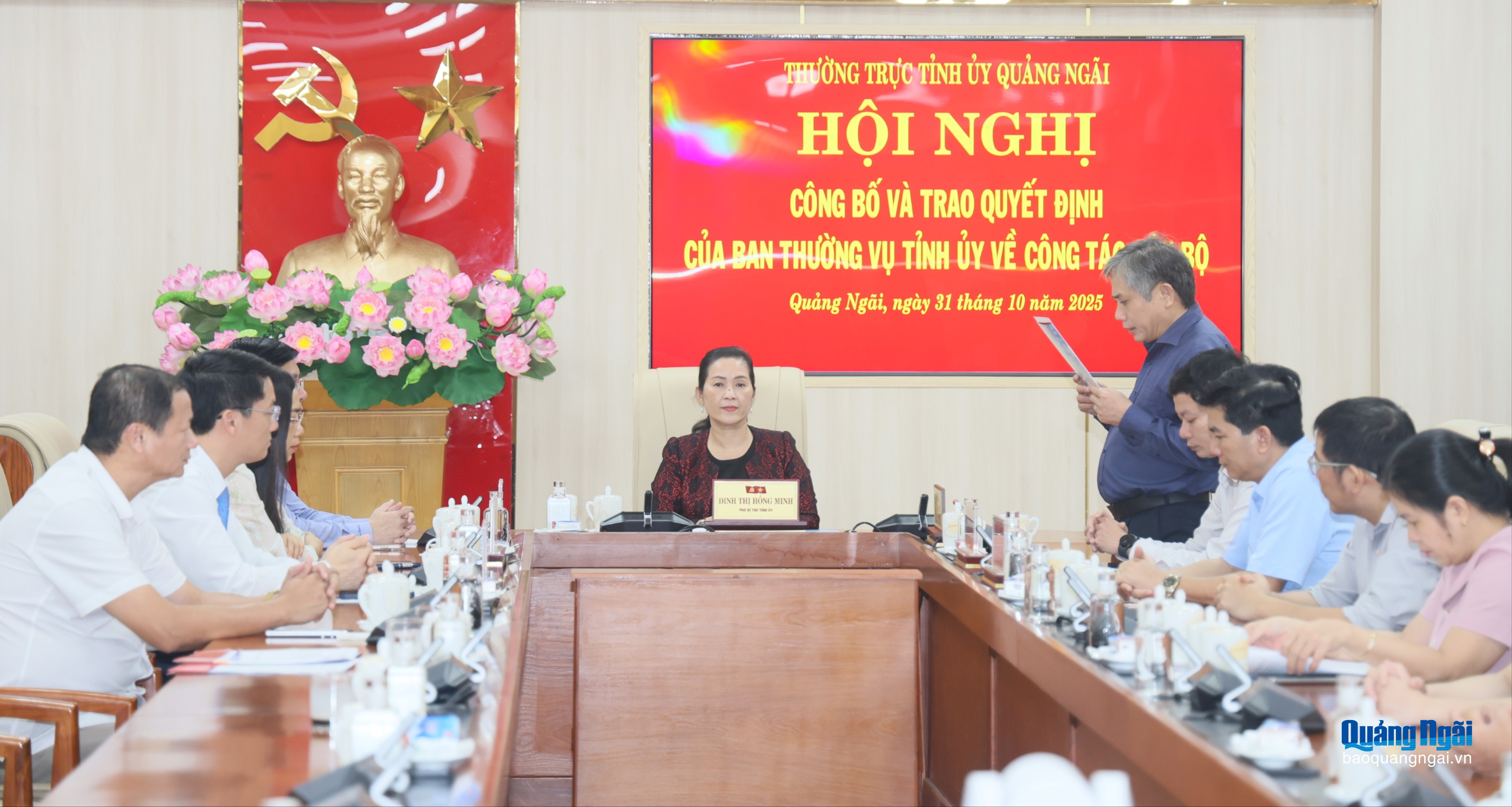 Chiều 31/10, Phó Bí thư Tỉnh ủy Đinh Thị Hồng Minh chủ trì Hội nghị công bố quyết định về công tác cán bộ. Dự hội nghị có Ủy viên Ban Thường vụ, Trưởng ban Tổ chức Tỉnh ủy Lữ Ngọc Bình cùng tập thể lãnh đạo, cán bộ Văn phòng Tỉnh ủy.