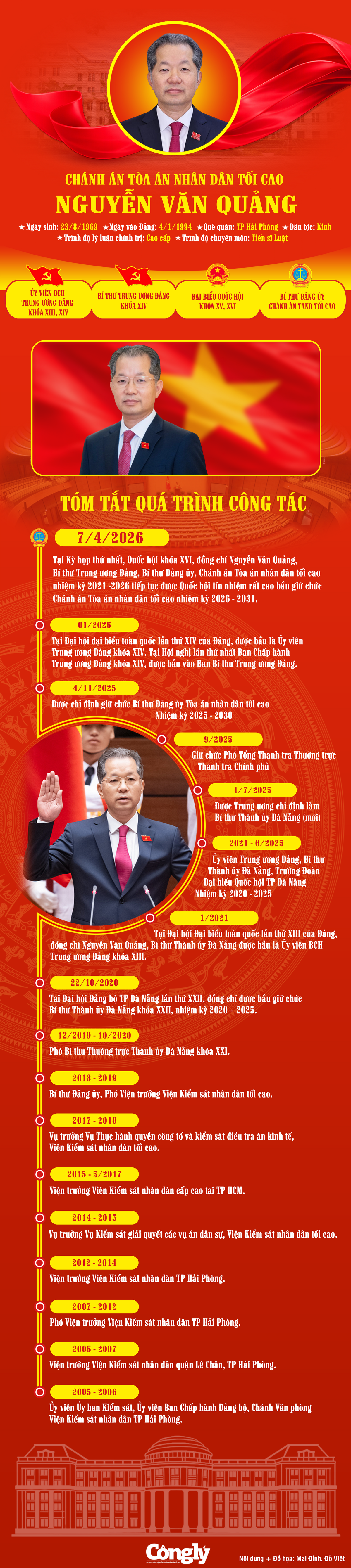 "Dưới cờ đỏ sao vàng thiêng liêng của Tổ quốc, trước Quốc hội và đồng bào cử tri cả nước, tôi - Chánh án Tòa án nhân dân tối cao nước Cộng hòa xã hội chủ nghĩa Việt Nam, xin tuyên thệ: Tuyệt đối trung thành với Tổ quốc, với nhân dân, với Hiến pháp nước Cộng hòa Xã hội chủ nghĩa Việt Nam, nỗ lực phấn đấu hoàn thành tốt nhiệm vụ được Đảng, Nhà nước và nhân dân giao phó", Chánh án Nguyễn Văn Quảng tuyên thệ.