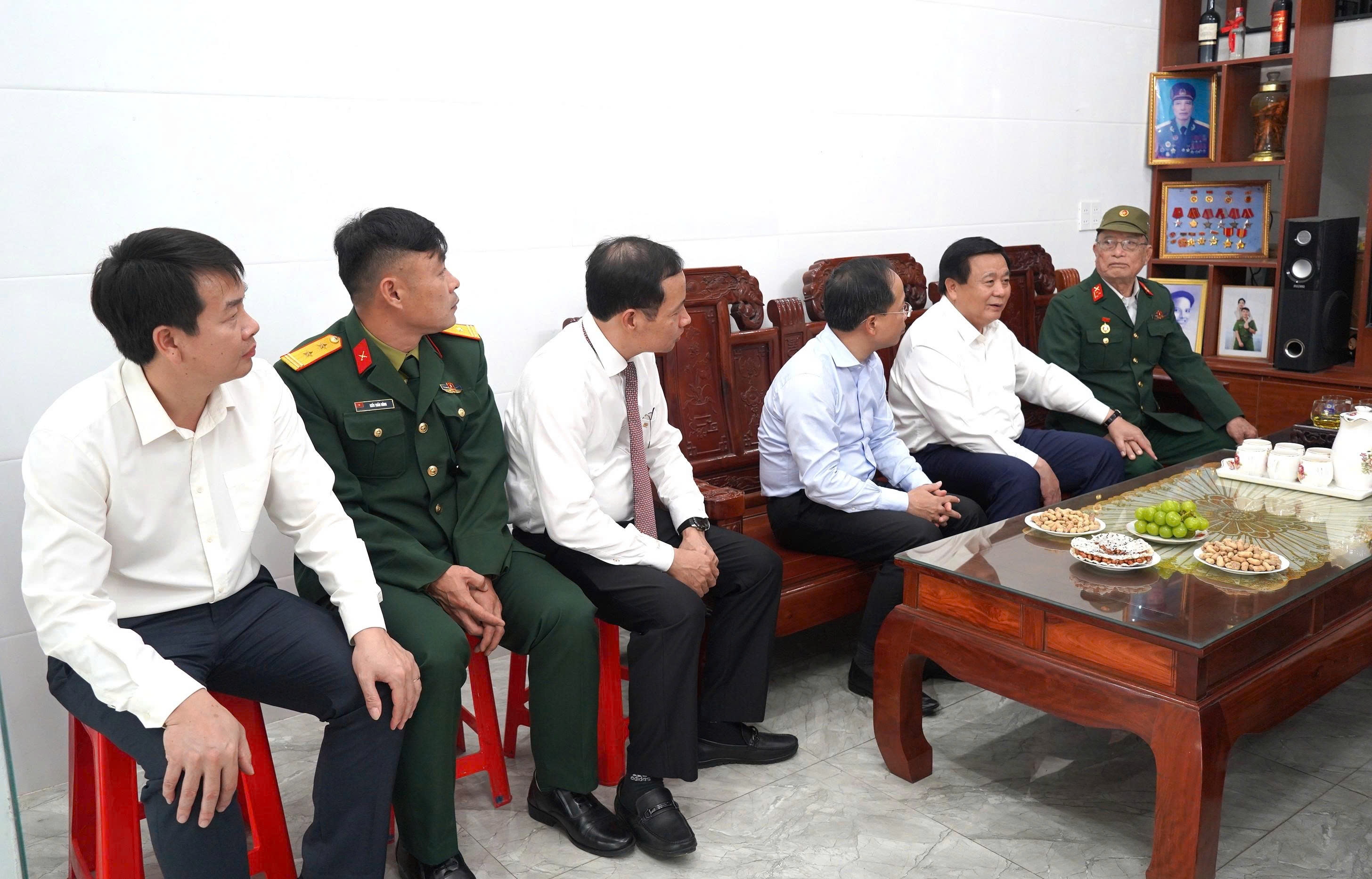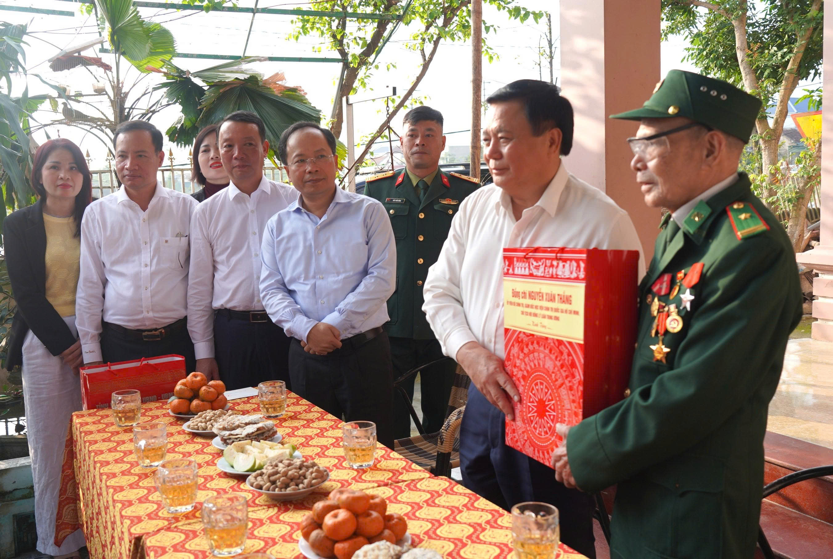 Đồng chí Nguyễn Xuân Thắng cùng đoàn công tác đã tới thăm, tặng quà gia đình ông Đậu Hữu Ngạn (sinh năm 1947, trú thôn Hồng Lam, là bệnh binh bị suy giảm khả năng lao động 82%) và gia đình ông Trần Viết Quý (sinh năm 1938, trú thôn Hòa An, là thương binh có tỷ lệ thương tật 38%).