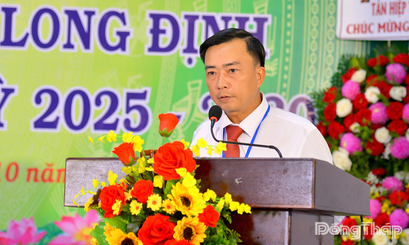Phát biểu chỉ đạo Đại hội, đồng chí Huỳnh Công Minh, Ủy viên Ban Thường vụ, Trưởng bộ phận kinh tế - xã hội Hội Nông dân tỉnh Đồng Tháp biểu dương và ghi nhận kết quả mà toàn thể cán bộ, hội viên Hội Nông dân xã Long Định đạt được trong nhiệm kỳ qua. Đồng thời, đề nghị Hội Nông dân xã Long Định tiếp tục đổi mới mạnh mẽ hơn nữa về tư duy, nội dung, phương thức hoạt động, thể hiện tinh thần “chủ động, sáng tạo, dám nghĩ, dám làm, dám chịu trách nhiệm” để xứng đáng là lực lượng nòng cốt trong phát triển nông nghiệp, nông dân, nông thôn của địa phương.