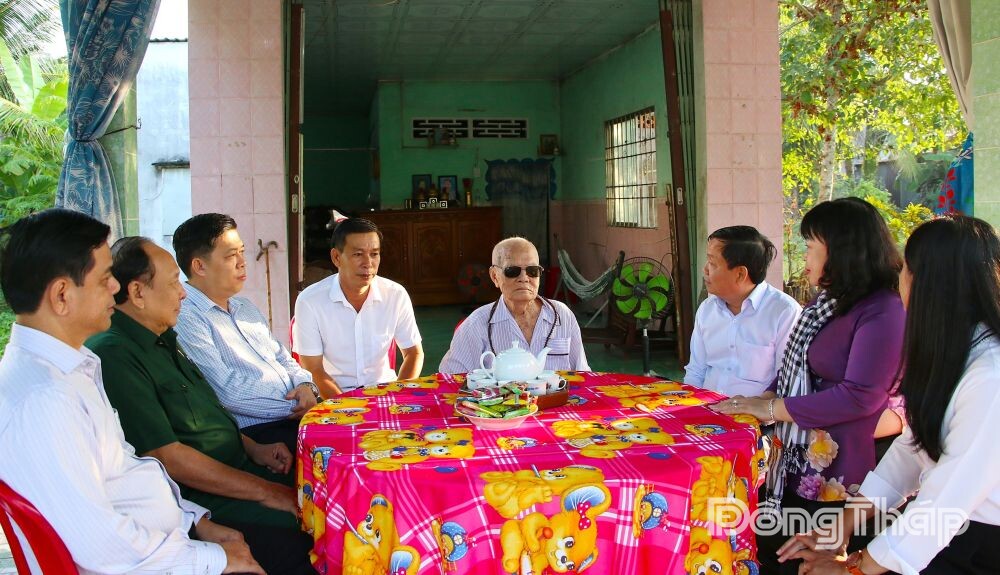 Đồng chí Phan Văn Thắng ân cần thăm hỏi sức khỏe, đời sống và bày tỏ lòng biết ơn đối với những cống hiến, hy sinh của thương binh Đinh Văn Thêm trong cuộc chiến bảo vệ Tổ quốc.