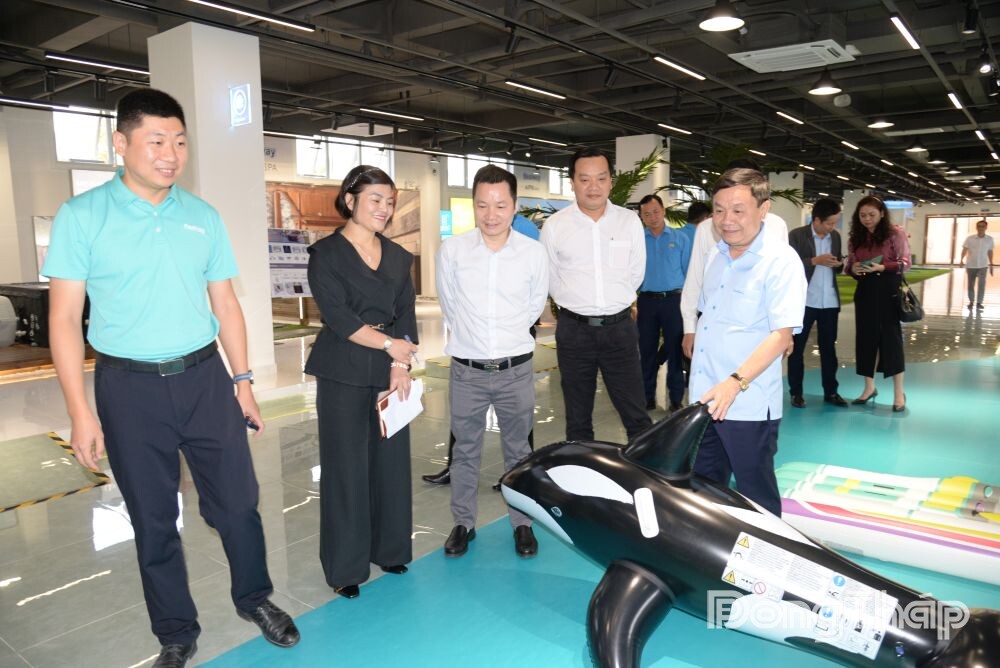 Đoàn công tác tìm hiểu hoạt động sản xuất tại Công ty TNHH Sản phẩm thể thao giải trí BestWay Việt Nam.