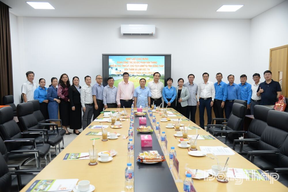 Đoàn công tác chụp ảnh lưu niệm cùng lãnh đạo Công ty TNHH Phát triển Khu công nghiệp Long Giang.