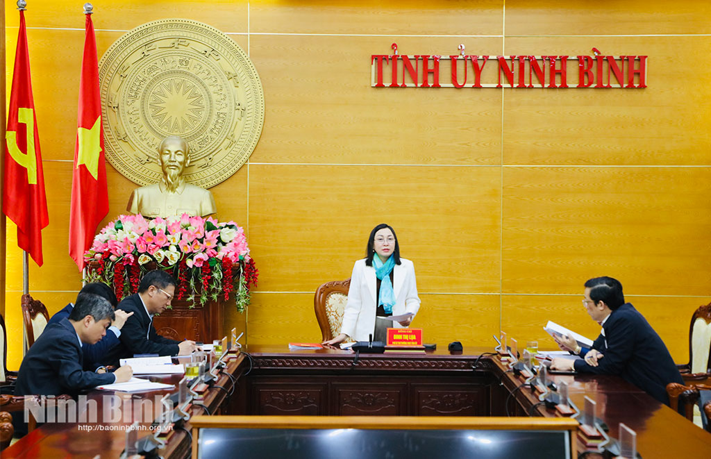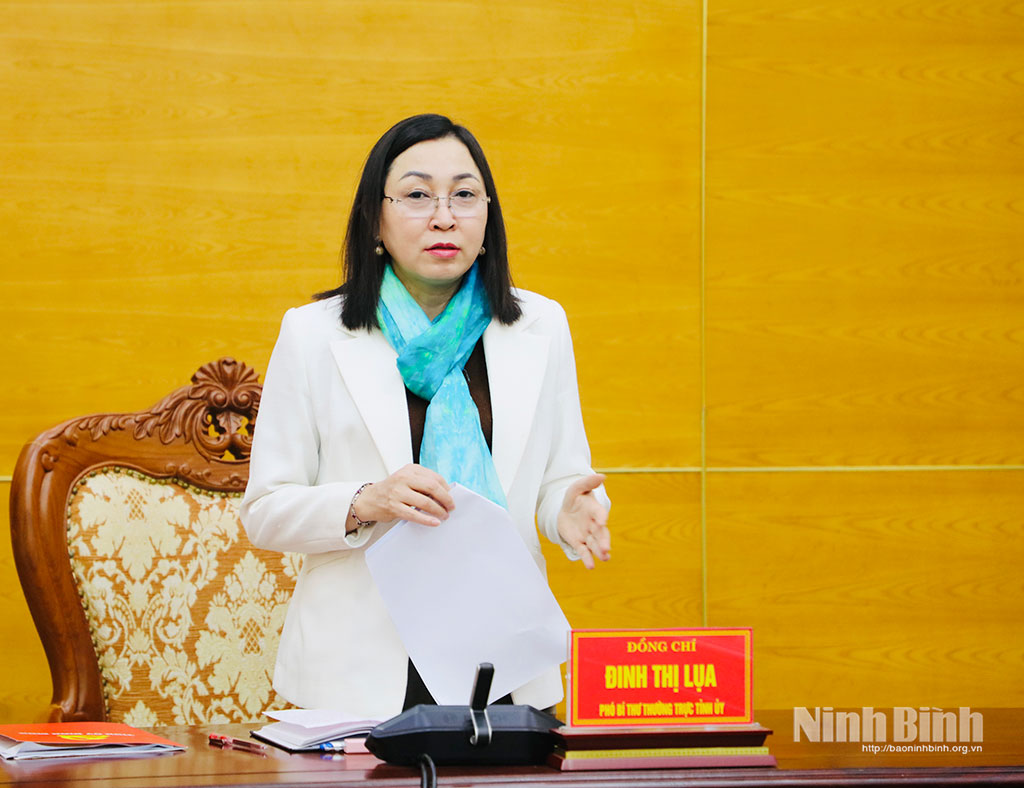 Đồng chí Đinh Thị Lụa, Phó Bí thư Thường trực Tỉnh ủy phát biểu kết luận hội nghị.