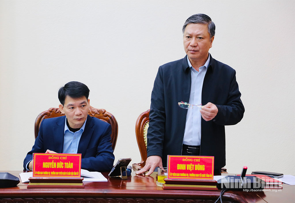Đồng chí Đinh Việt Dũng, Ủy viên Ban Thường vụ Tỉnh ủy, Trưởng Ban Tổ chức Tỉnh ủy phát biểu tại hội nghị.