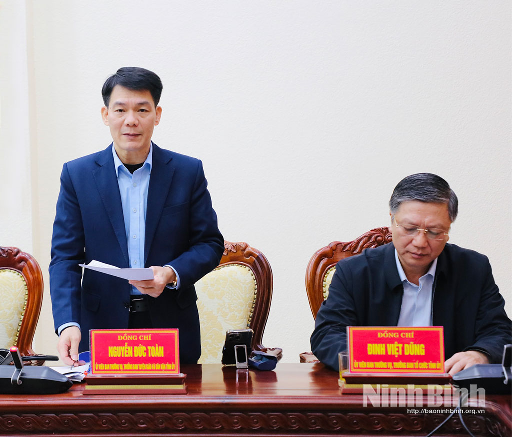Đồng chí Nguyễn Đức Toàn, Ủy viên Ban Thường vụ Tỉnh ủy, Trưởng Ban Tuyên giáo và Dân vận Tỉnh ủy phát biểu tại hội nghị.