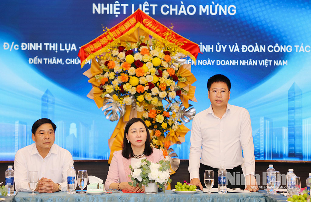 Nhân ngày Doanh nhân Việt Nam 13/10, đồng chí Phó Bí thư Thường trực Tỉnh ủy chúc các doanh nghiệp ngày càng phát triển mạnh mẽ, tiếp tục gặt hái nhiều thành công, ghi dấu ấn với những công trình tầm vóc, hiện đại, mang lại giá trị bền vững cho cộng đồng và cho tỉnh Ninh Bình.