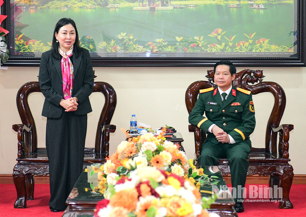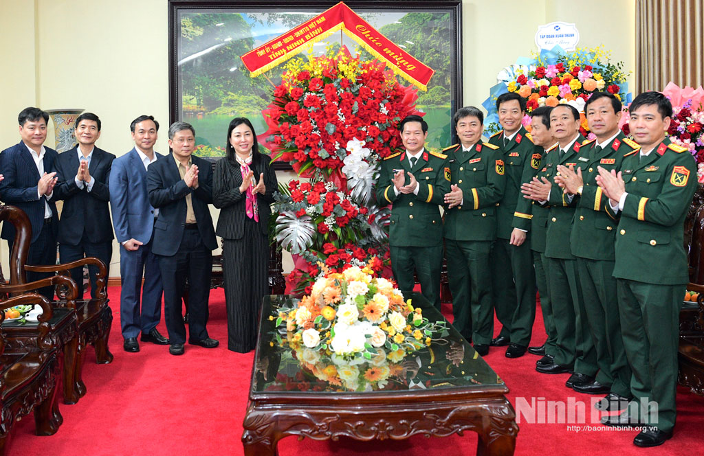 Tặng hoa, chúc mừng tại Quân đoàn 12, Sư đoàn 350, đồng chí Phó Bí thư Thường trực Tỉnh ủy nêu rõ: Trong bối cảnh sáp nhập tỉnh, thực hiện chính quyền địa phương hai cấp, cấp ủy, chính quyền tỉnh Ninh Bình đã tập trung chỉ đạo, nỗ lực làm tốt công tác xây dựng Đảng, xây dựng hệ thống chính trị, phát triển kinh tế, thu ngân sách vượt kế hoạch đề ra, an sinh xã hội được đảm bảo, an ninh chính trị, trật tự an toàn xã hội được giữ vững. Trong kết quả chung của tỉnh có sự đóng góp tích cực của lực lượng vũ trang, trong đó có các đơn vị quân đội đứng chân trên địa bàn đã có nhiều hoạt động cùng chăm lo đời sống nhân dân và phát triển kinh tế- xã hội của tỉnh.
