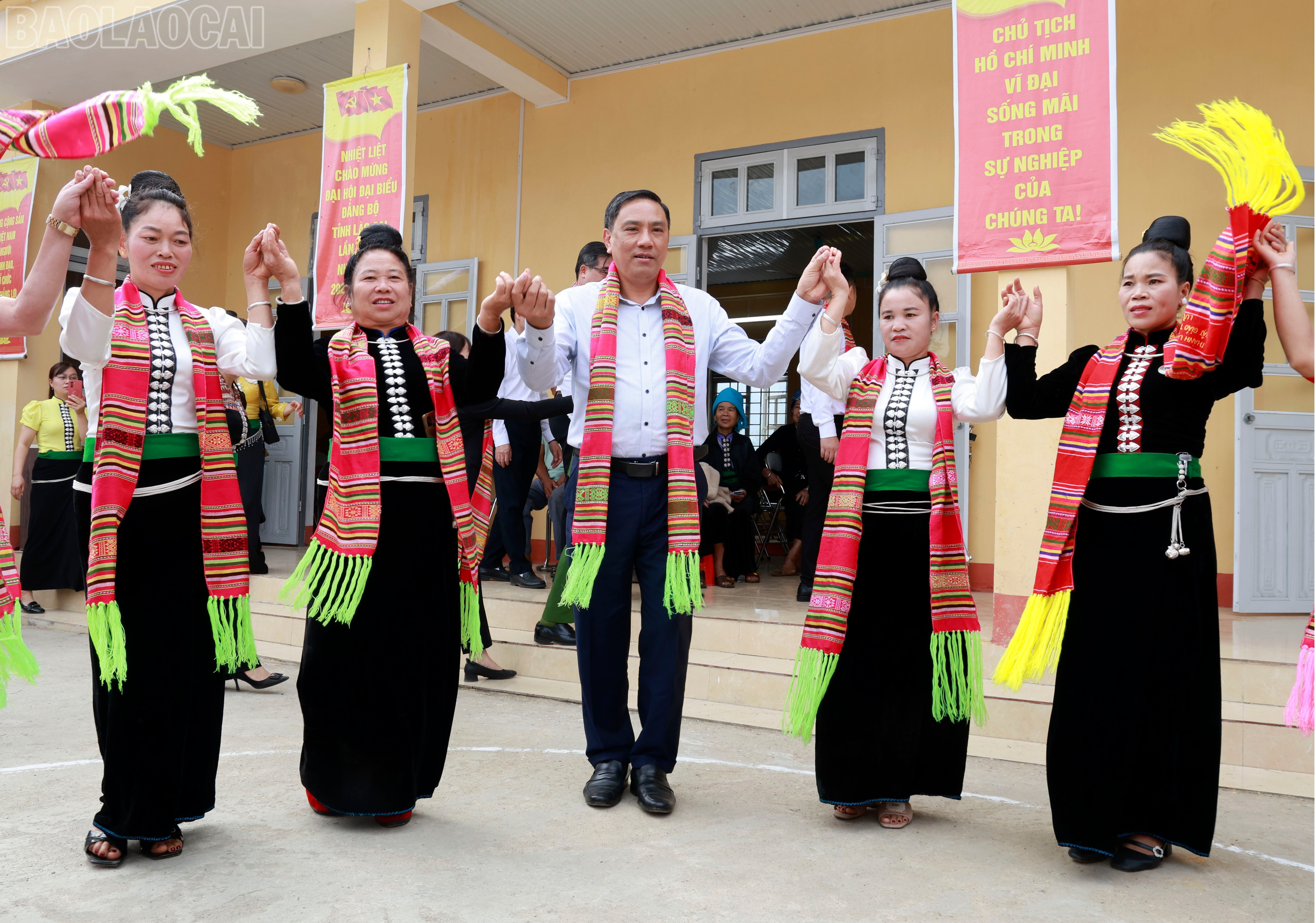 Đồng chí Hoàng Giang - Phó Bí thư Thường trực Tỉnh ủy tham gia phần hội cùng bà con Tổ dân phố Nậm Tọ.