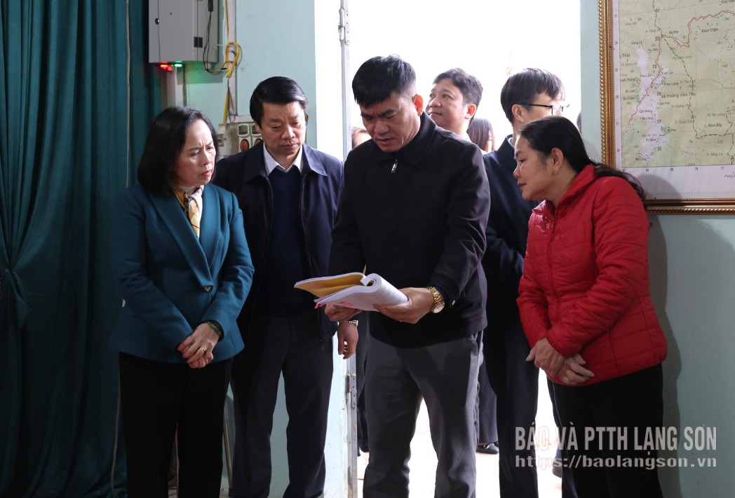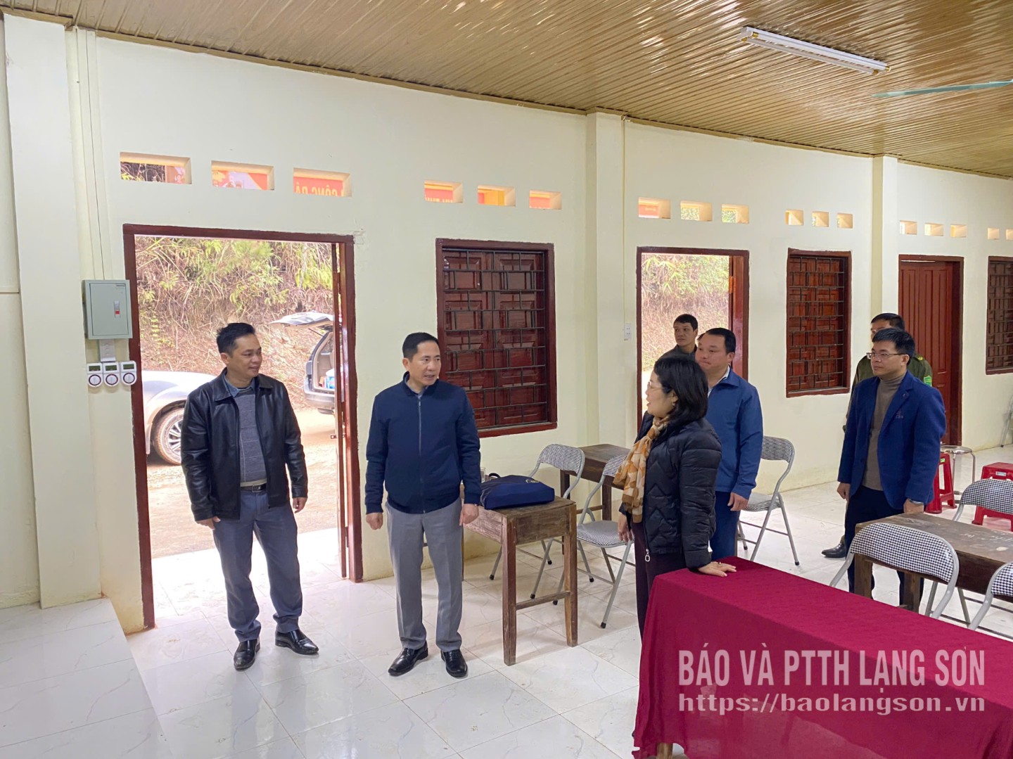 Đoàn kiểm tra khảo sát thực tế khu vực bỏ phiếu tại nhà văn hóa thôn Nà Lầu, xã Hoàng Văn Thụ