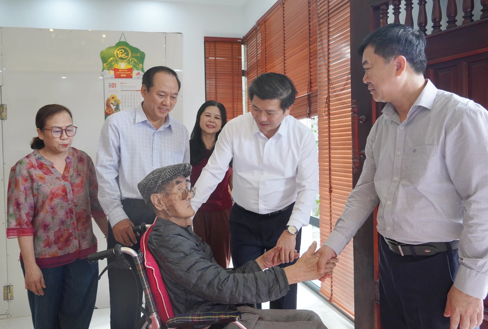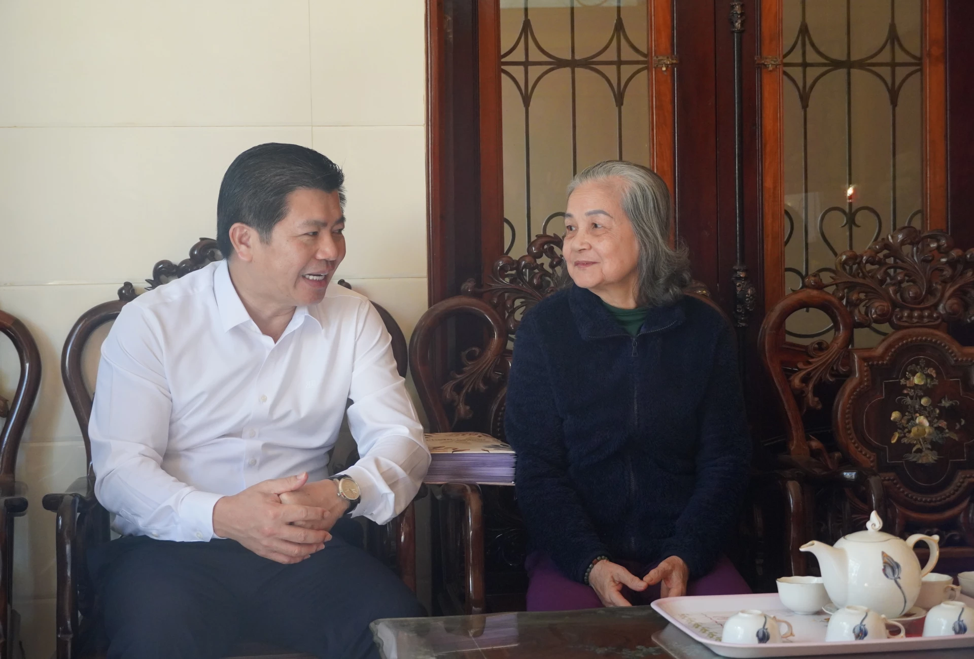 Đồng chí Phó Bí thư Thường trực Tỉnh ủy Trần Vũ Khiêm thăm, chúc Tết gia đình đồng chí Thái Bá Nhiệm, nguyên Bí thư Tỉnh ủy - Ảnh: HL