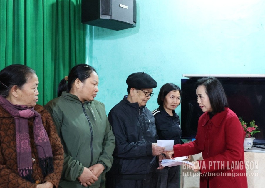 Lãnh đạo Văn phòng Đoàn đại biểu Quốc hội và HĐND tỉnh, Đảng ủy xã Chi Lăng tặng quà tết cho gia đình chính sách, hộ nghèo, có hoàn cảnh khó khăn của thôn Hữu Nghị