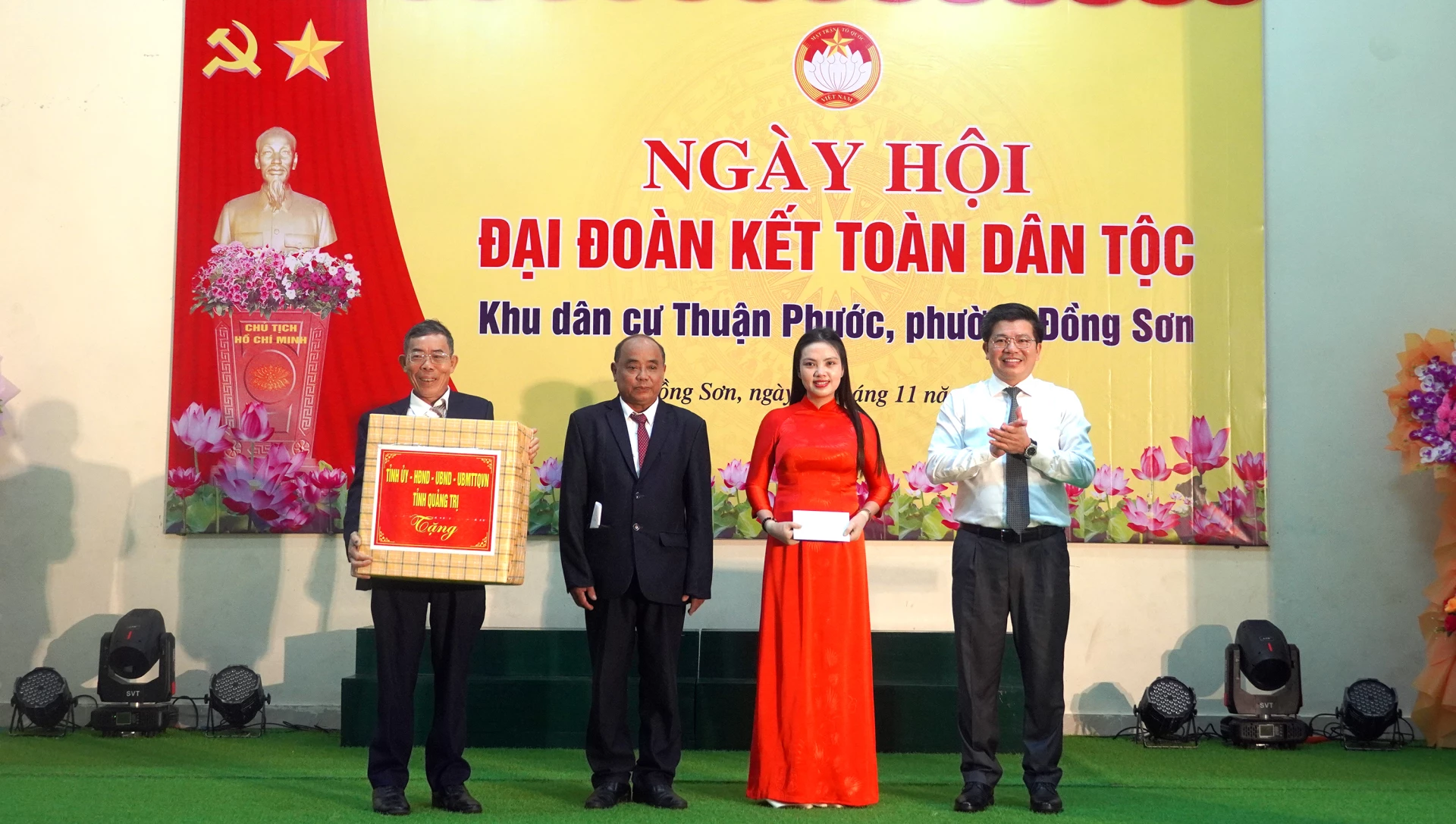 Dịp này, thay mặt lãnh đạo tỉnh, đồng chí Phó Bí thư Thường trực Tỉnh ủy đã tặng quà chúc mừng cán bộ và Nhân dân TDP Thuận Phước; Ủy ban MTTQ Việt Nam tỉnh tặng 30 suất quà cho các hộ dân có hoàn cảnh khó khăn của phường Đồng Sơn.