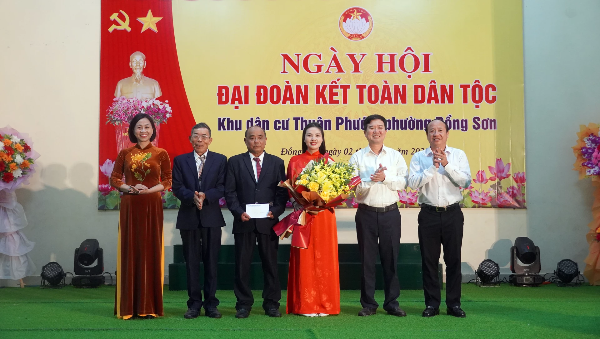 Đại diện lãnh đạo phường Đồng Sơn chúc mừng Tổ dân phố Thuận Phước - Ảnh: N.M