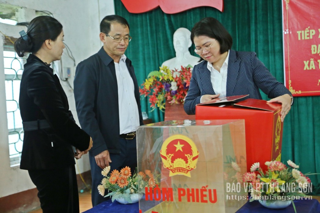 Đồng chí Phó Bí thư Tỉnh ủy và đoàn công tác kiểm tra điểm bầu cử số 1, thôn Hữu Vĩnh, xã Bắc Sơn