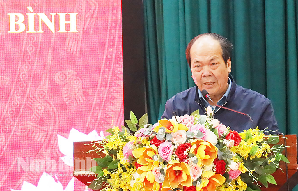 Đồng chí Lê Thị Nga, Ủy viên Trung ương Đảng, Phó Chủ nhiệm Thường trực Ủy ban Dân nguyện và Giám sát của Quốc hội phát biểu tại buổi tiếp xúc.