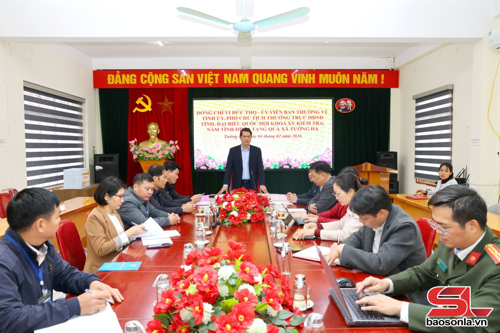 Đoàn công tác của tỉnh đã nghe lãnh đạo 2 xã báo cáo công tác lãnh đạo, chỉ đạo và triển khai chuẩn bị đón Tết Nguyên đán Bính Ngọ năm 2026; báo cáo kết quả tự giám sát việc lãnh đạo, chỉ đạo công tác chuẩn bị và tiến hành bầu cử đại biểu Quốc hội khóa XVI và bầu cử đại biểu HĐND các cấp nhiệm kỳ 2026-2031. Theo đó, các xã đã thành lập đoàn công tác nắm tình hình chuẩn bị Tết nguyên đán tại các bản; thăm hỏi, tặng quà cho các đối tượng chính sách, người có công với cách mạng, hộ nghèo, hộ cận nghèo, các đối tượng bảo trợ xã hội. Bảo đảm an ninh trật tự, tăng cường công tác phòng, chống cháy nổ; kiểm soát thị trường hàng hóa trước, trong và sau Tết Nguyên đán Bính Ngọ.